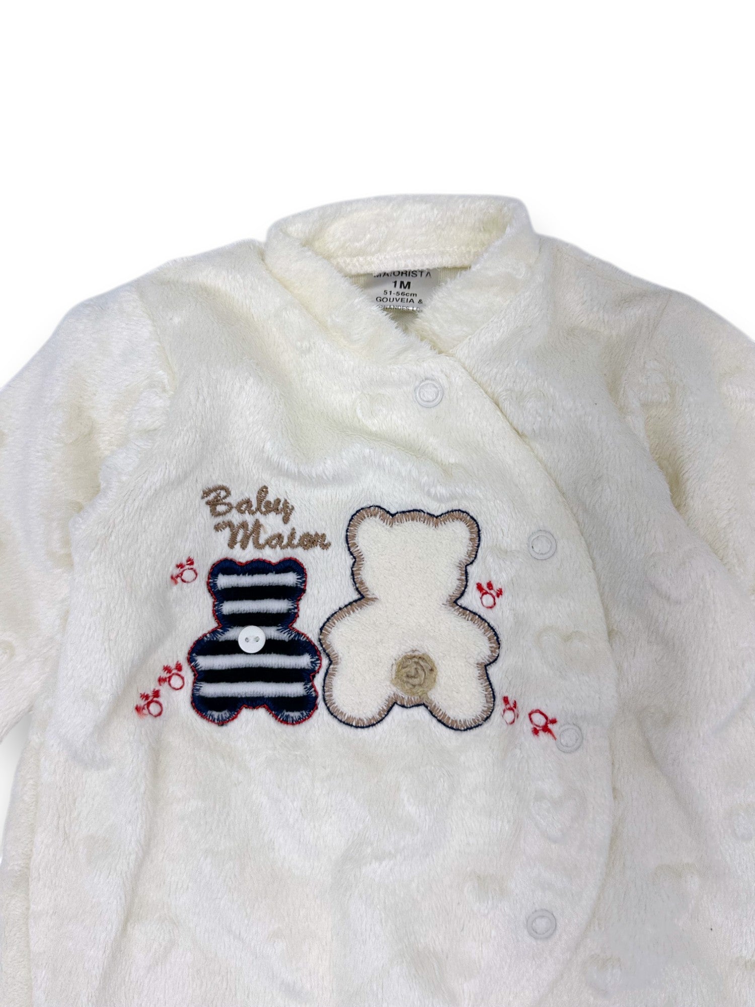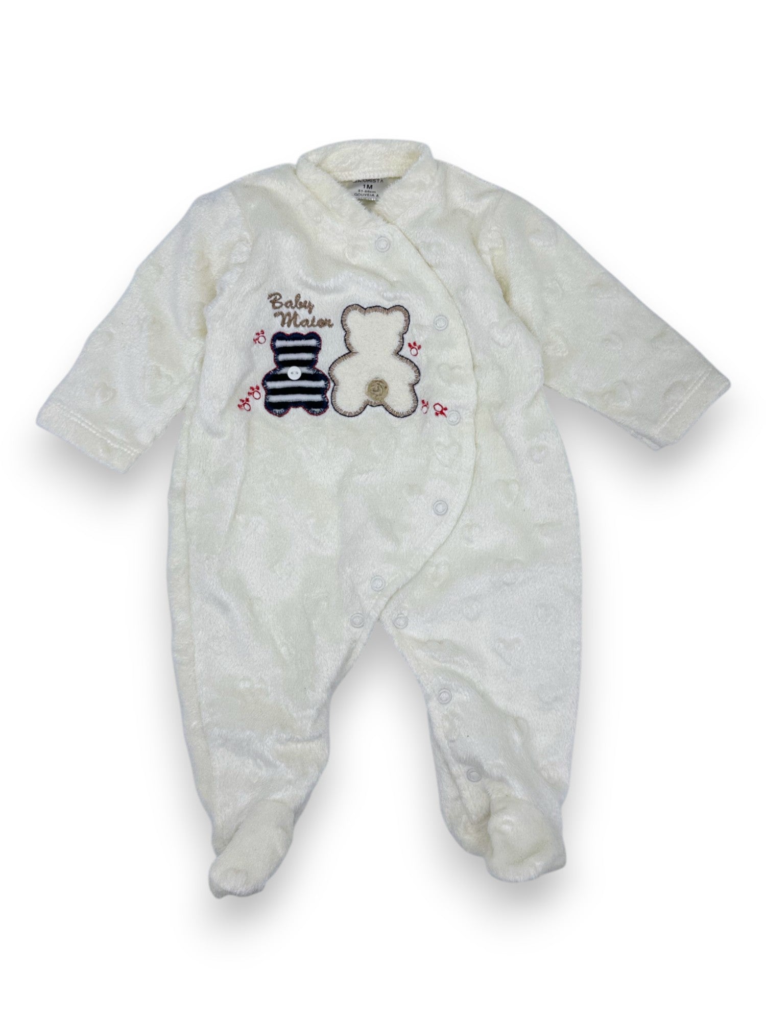 Babygrow branco felpudo, da marca Maiorista.