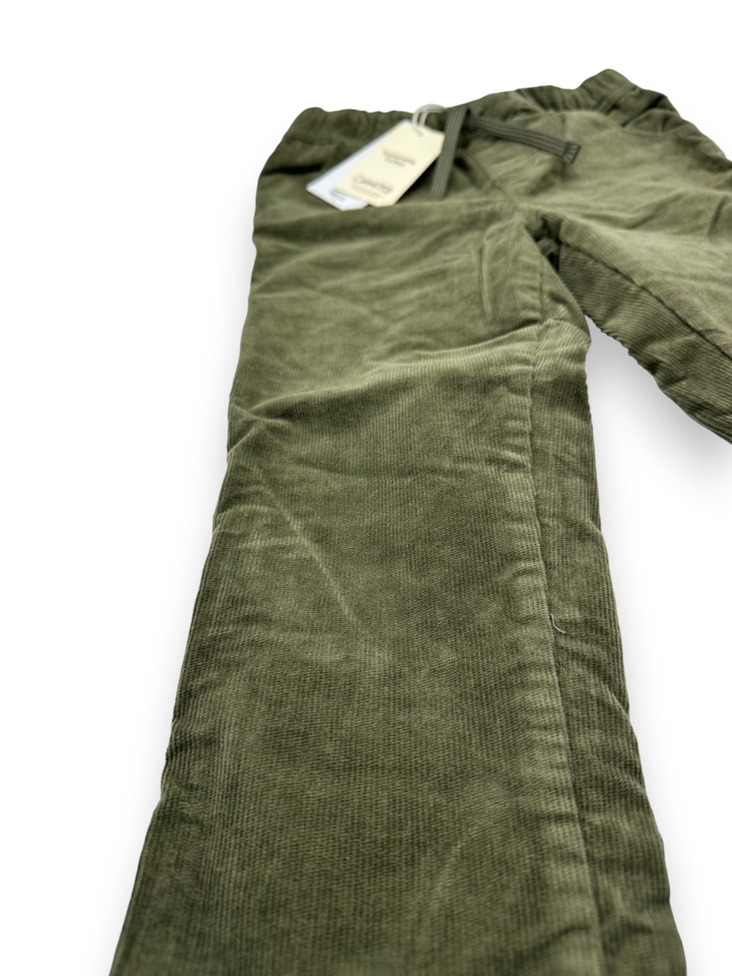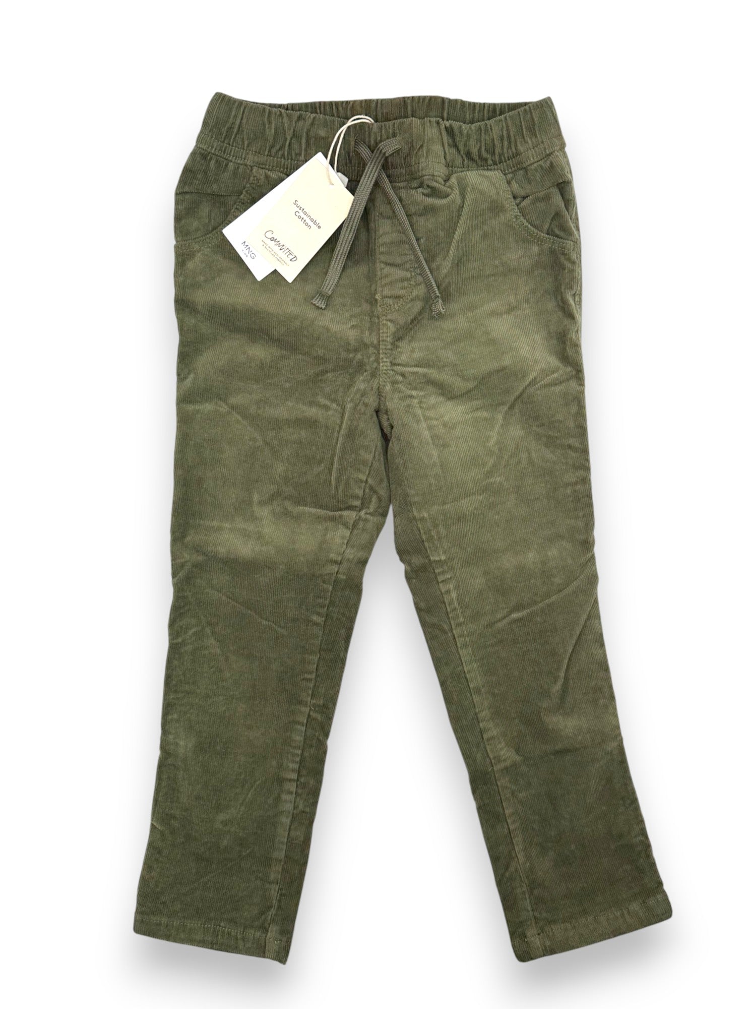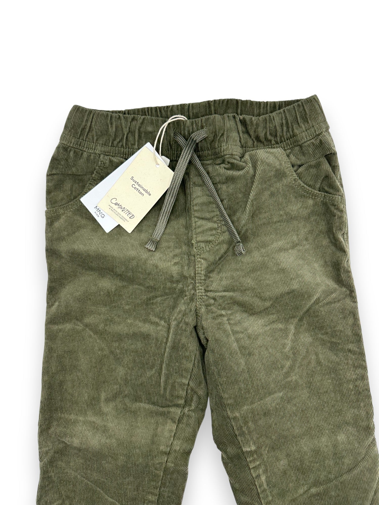 Calças em bombazine verde com elastano e forro em algodão, da Mango Kids.