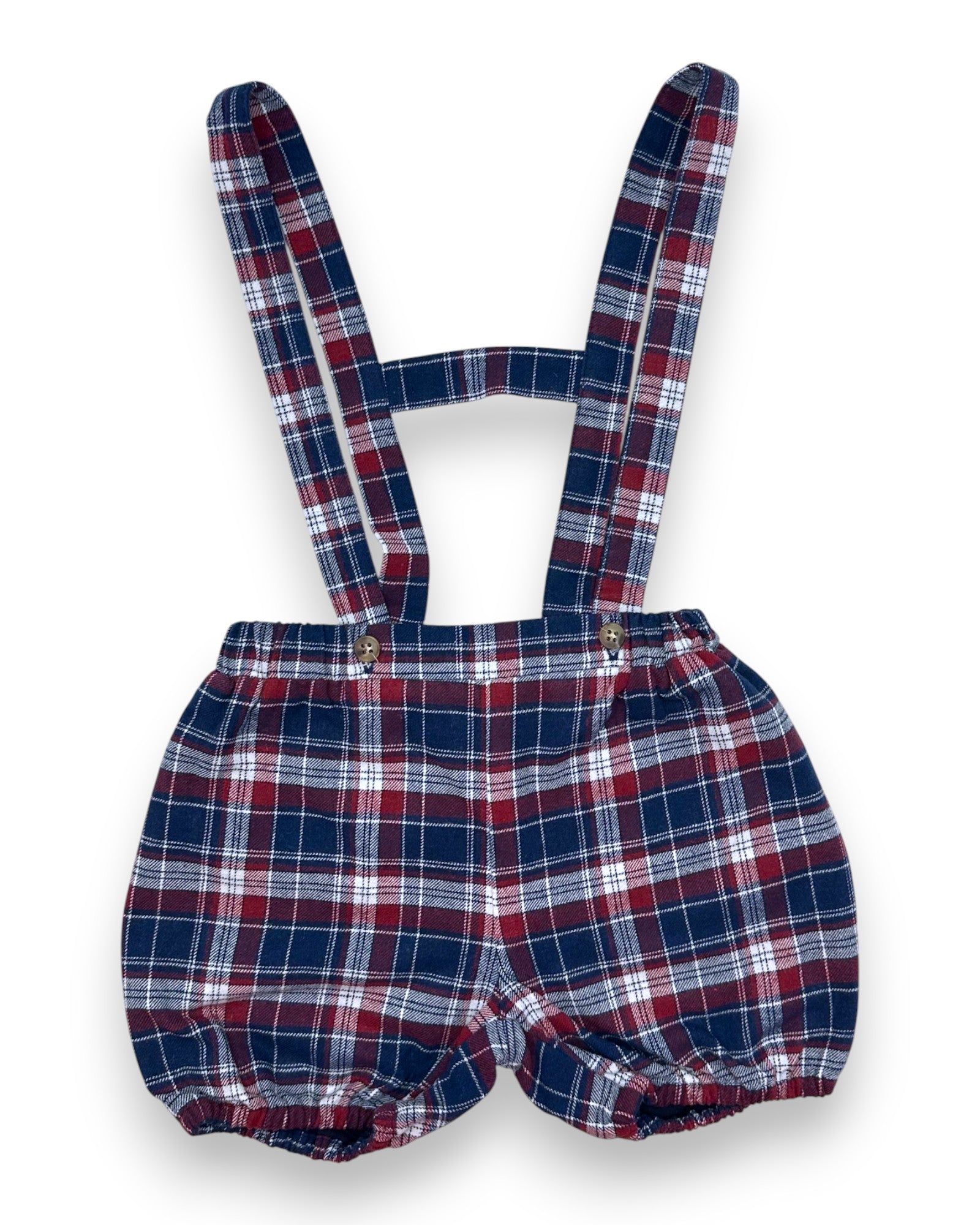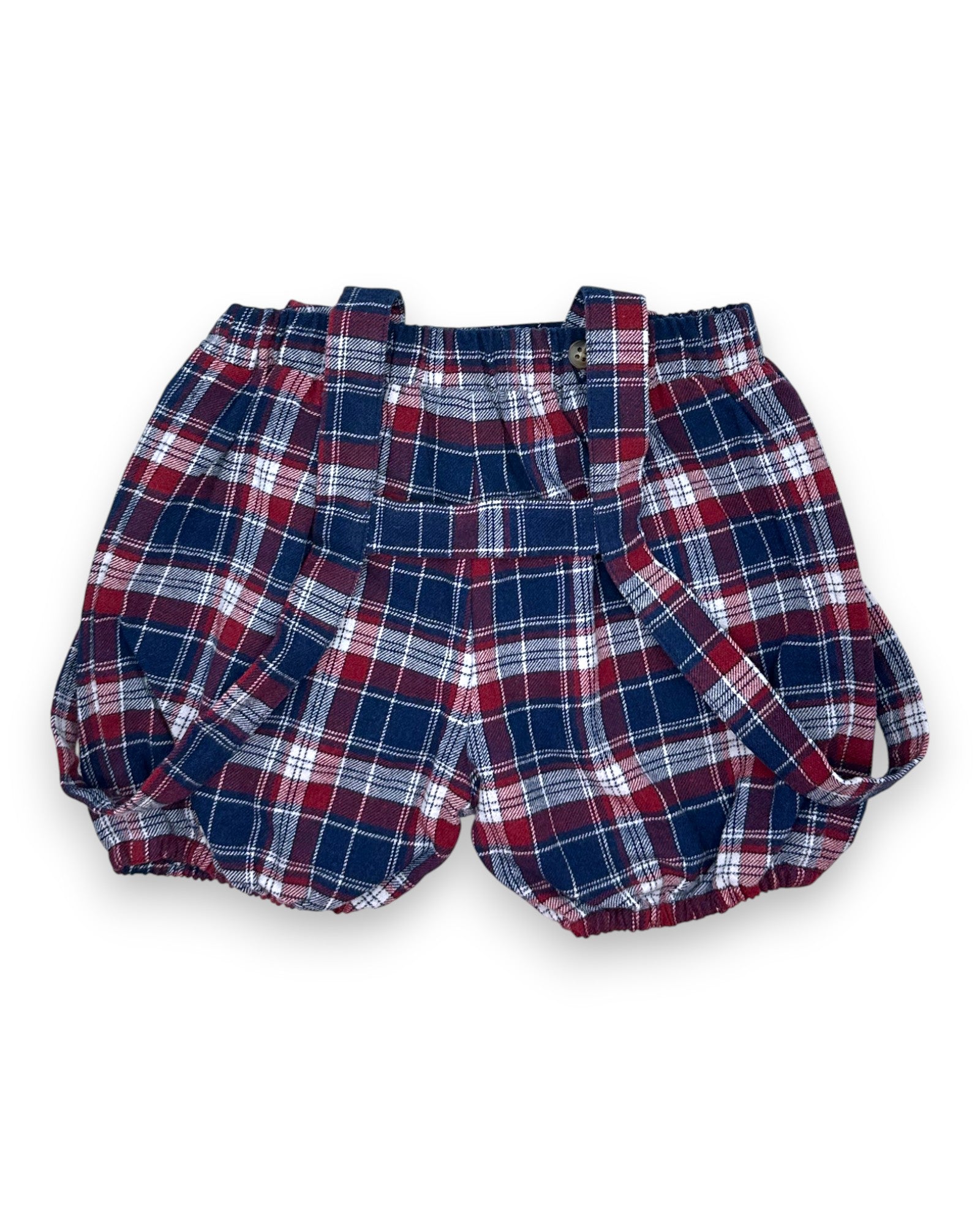 Calções em flanela xadrez, com suspensórios amovíveis, da Chicco.