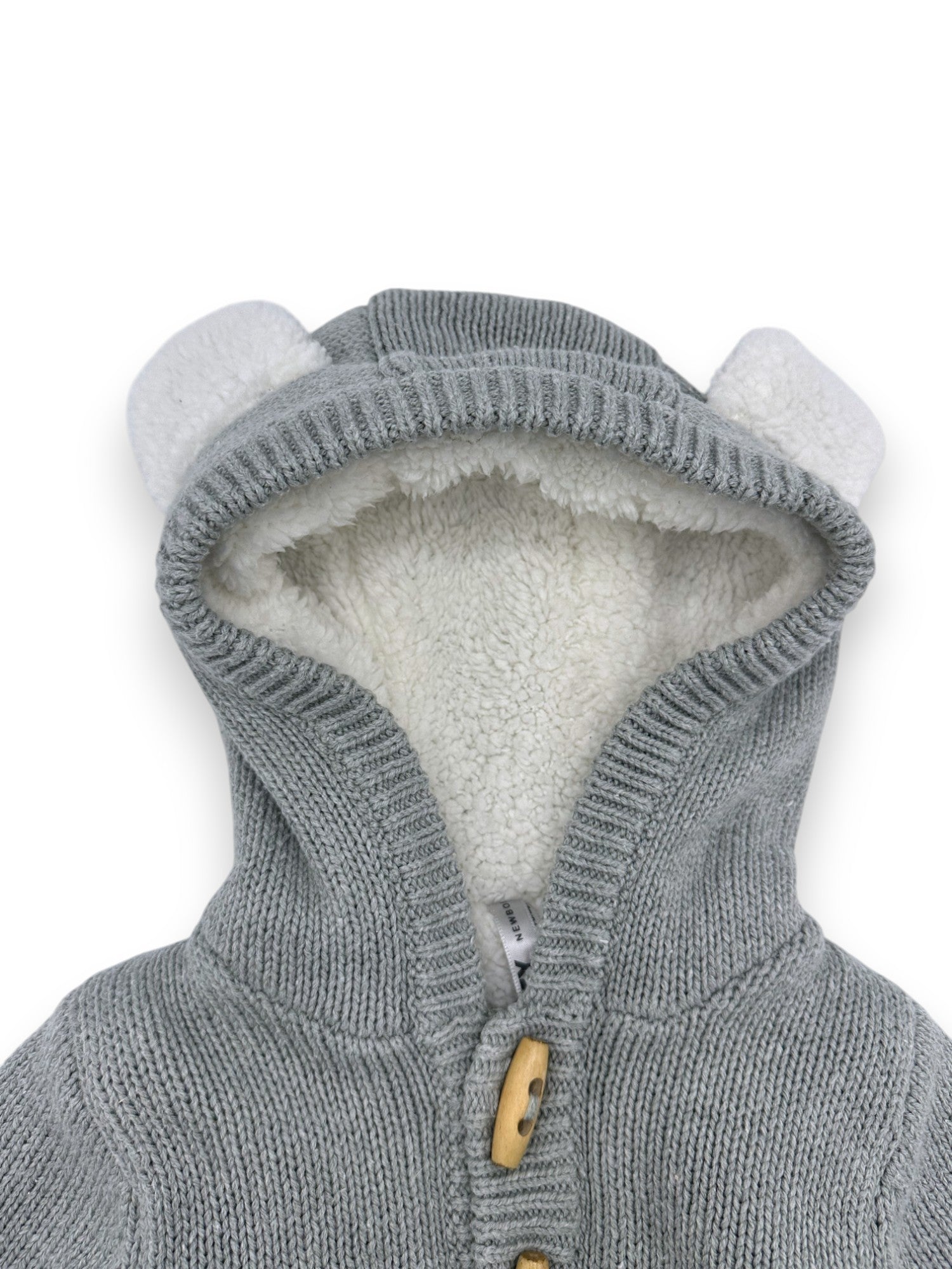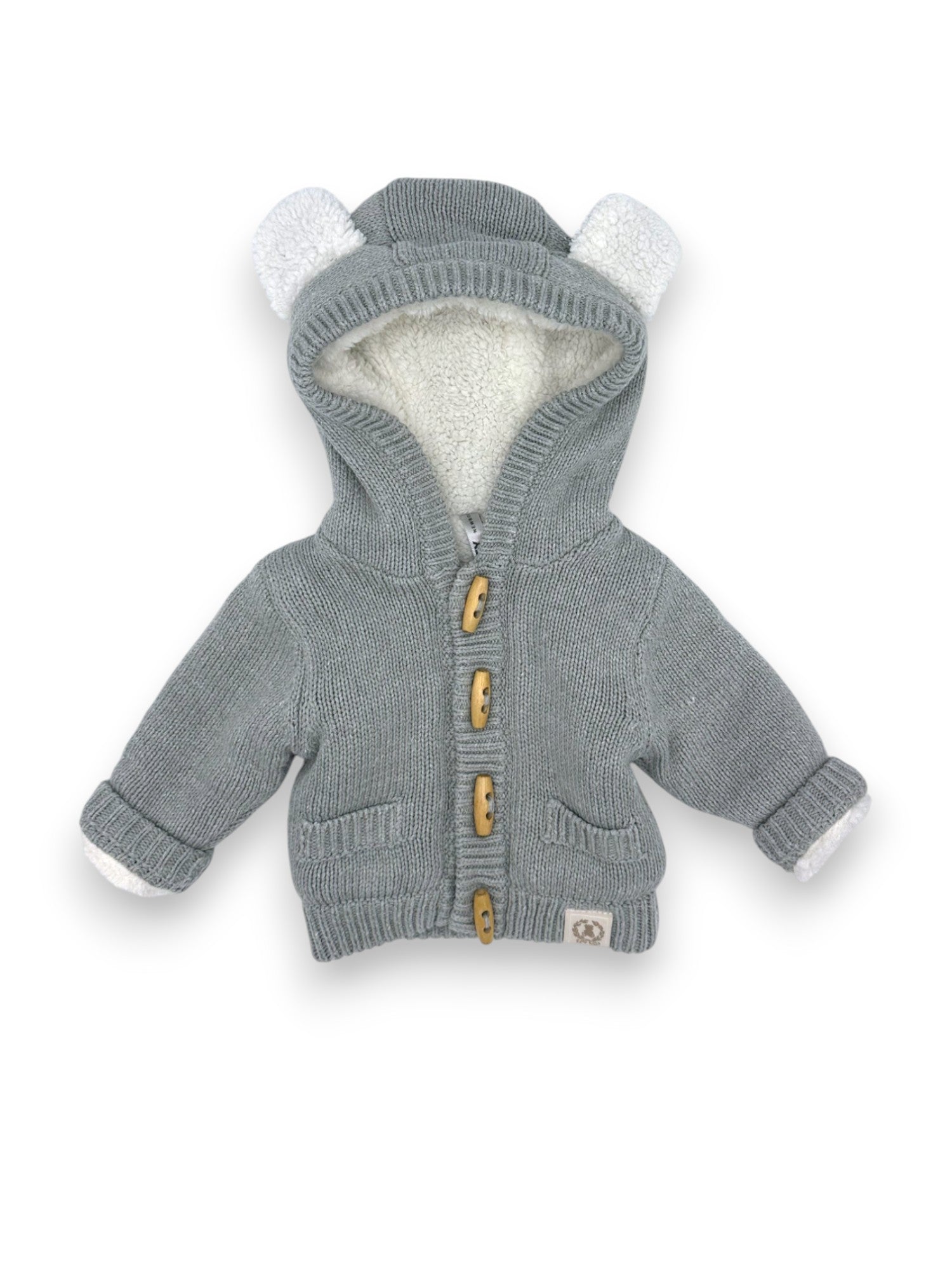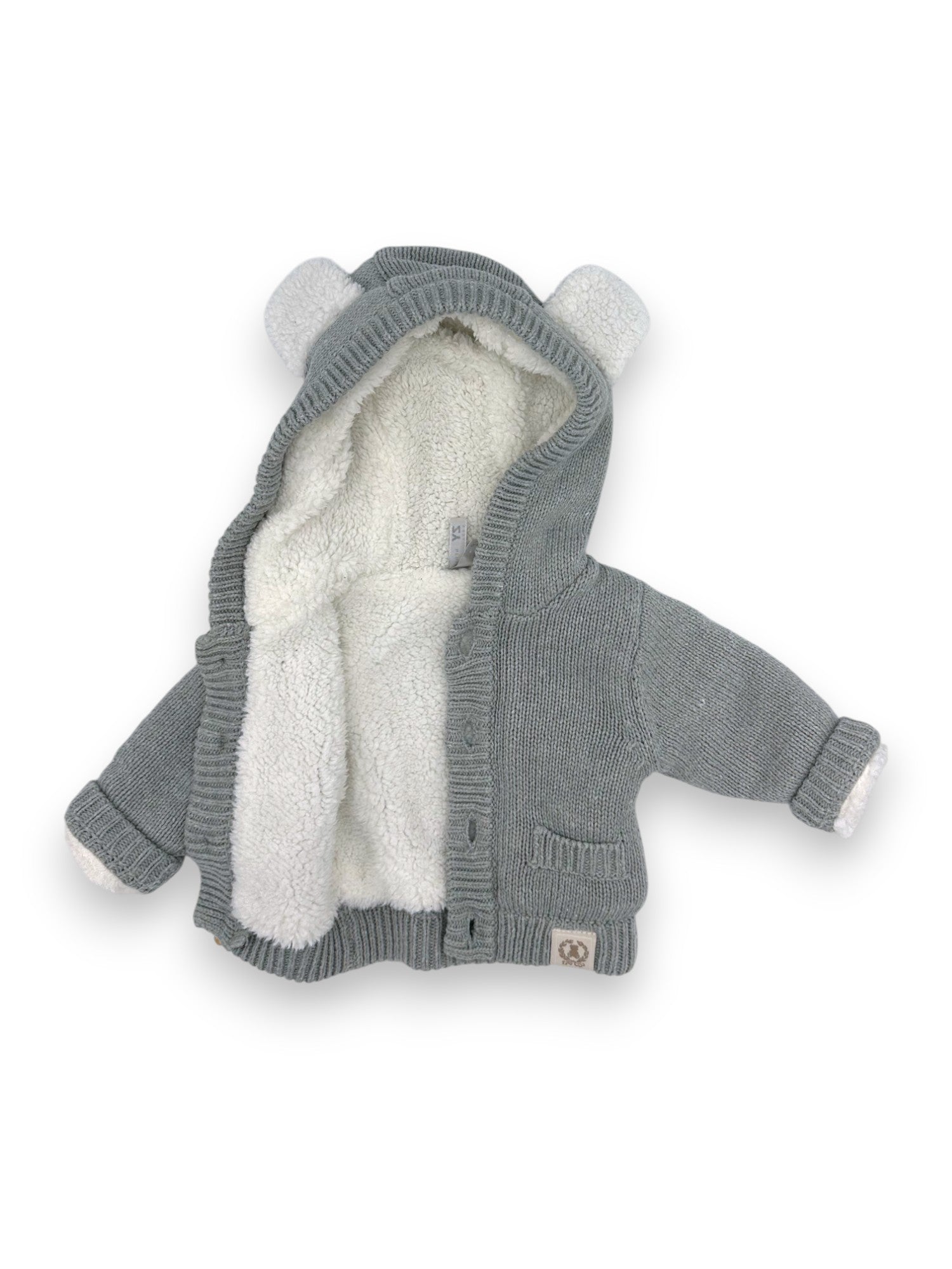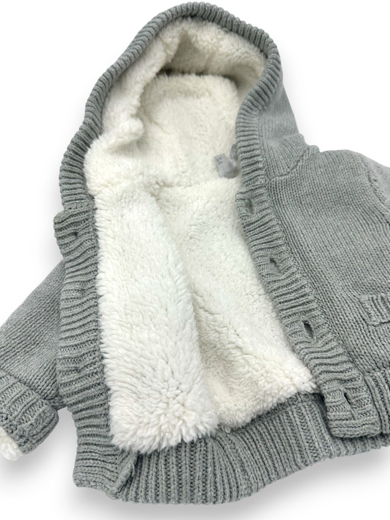 Casaco de malha cinzento com forro polar e capuz com orelhinhas, da Zippy.