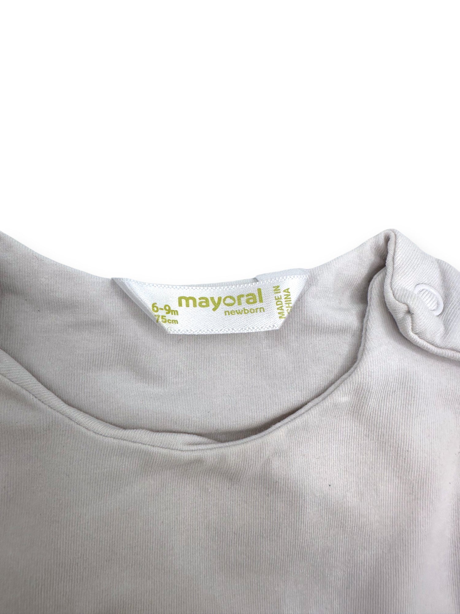 Set consisting of a white ruffled t-shirt and pink floral leggings. By Mayoral.