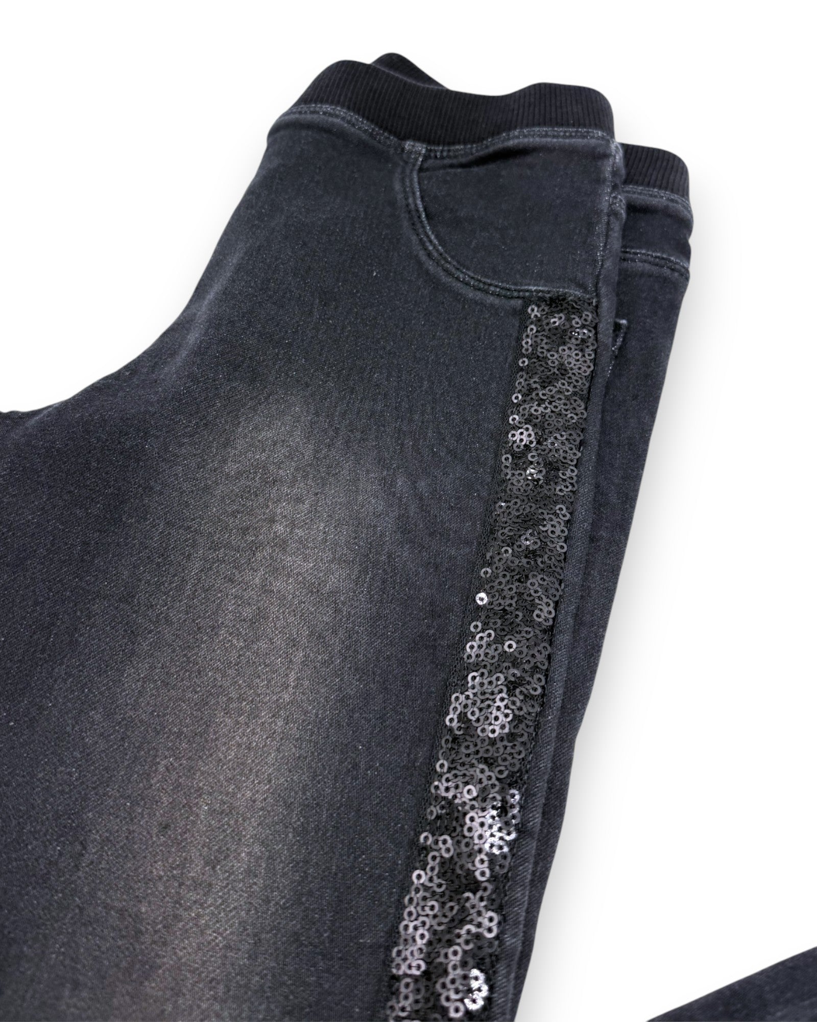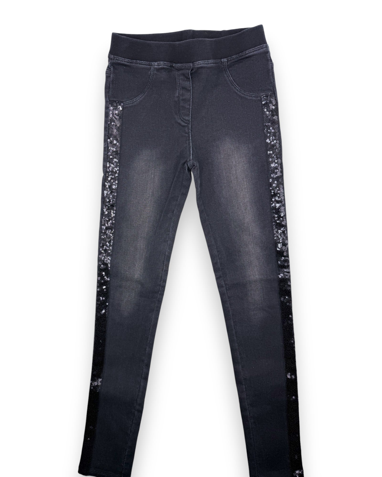 Jeggings pretas com lantejoulas na lateral, da Boboli.