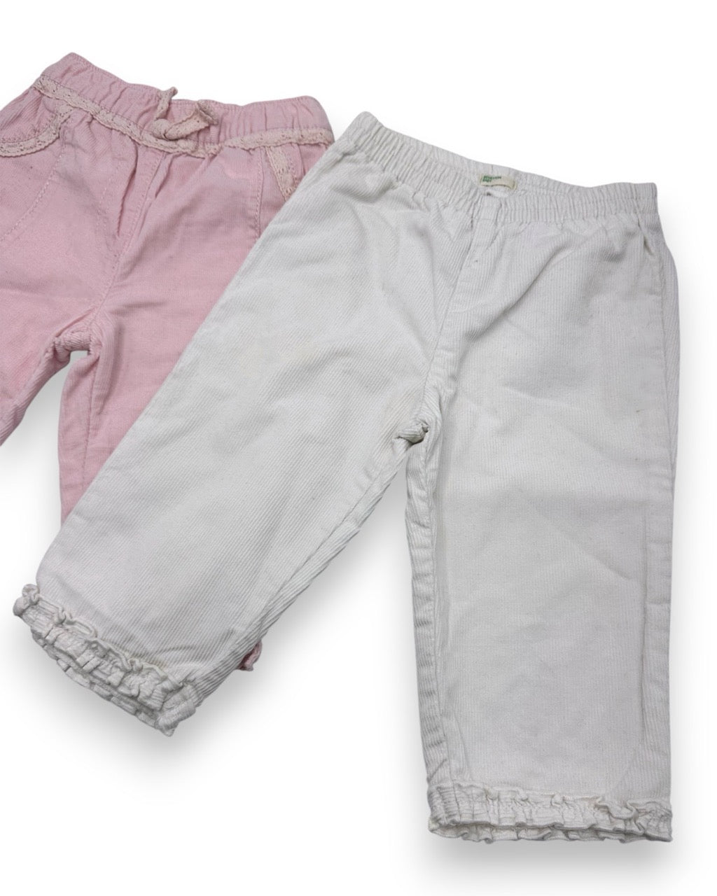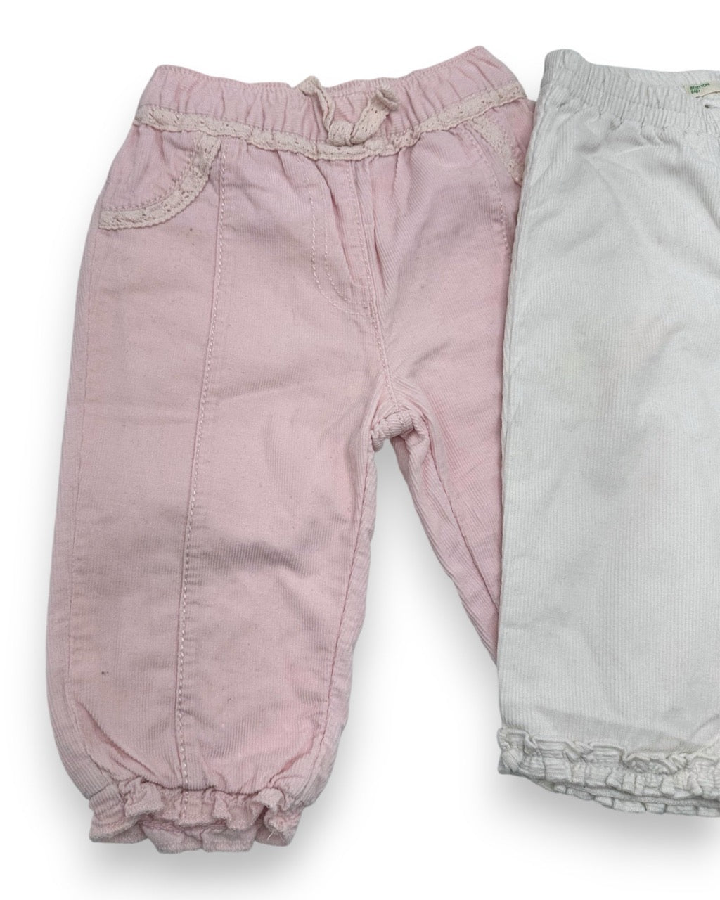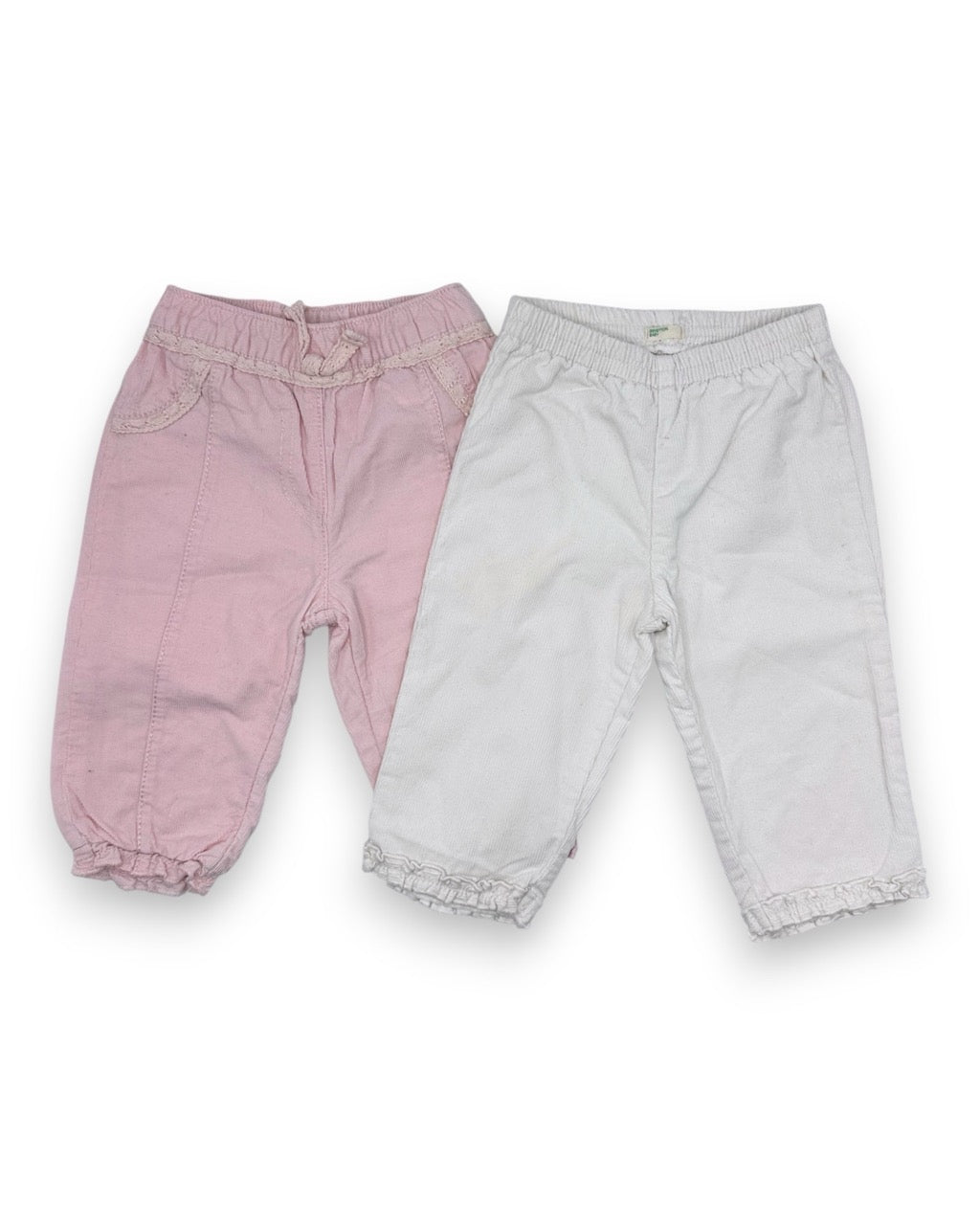Pack composto por 2 calças de bombazine com forro e elástico na cintura e nos tornozelos, das marcas Benetton e George.