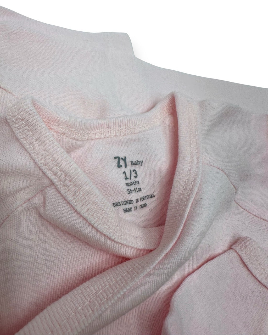Pack de 4 bodies rosa estilo cruzado, de mangas compridas. Marca Zippy.