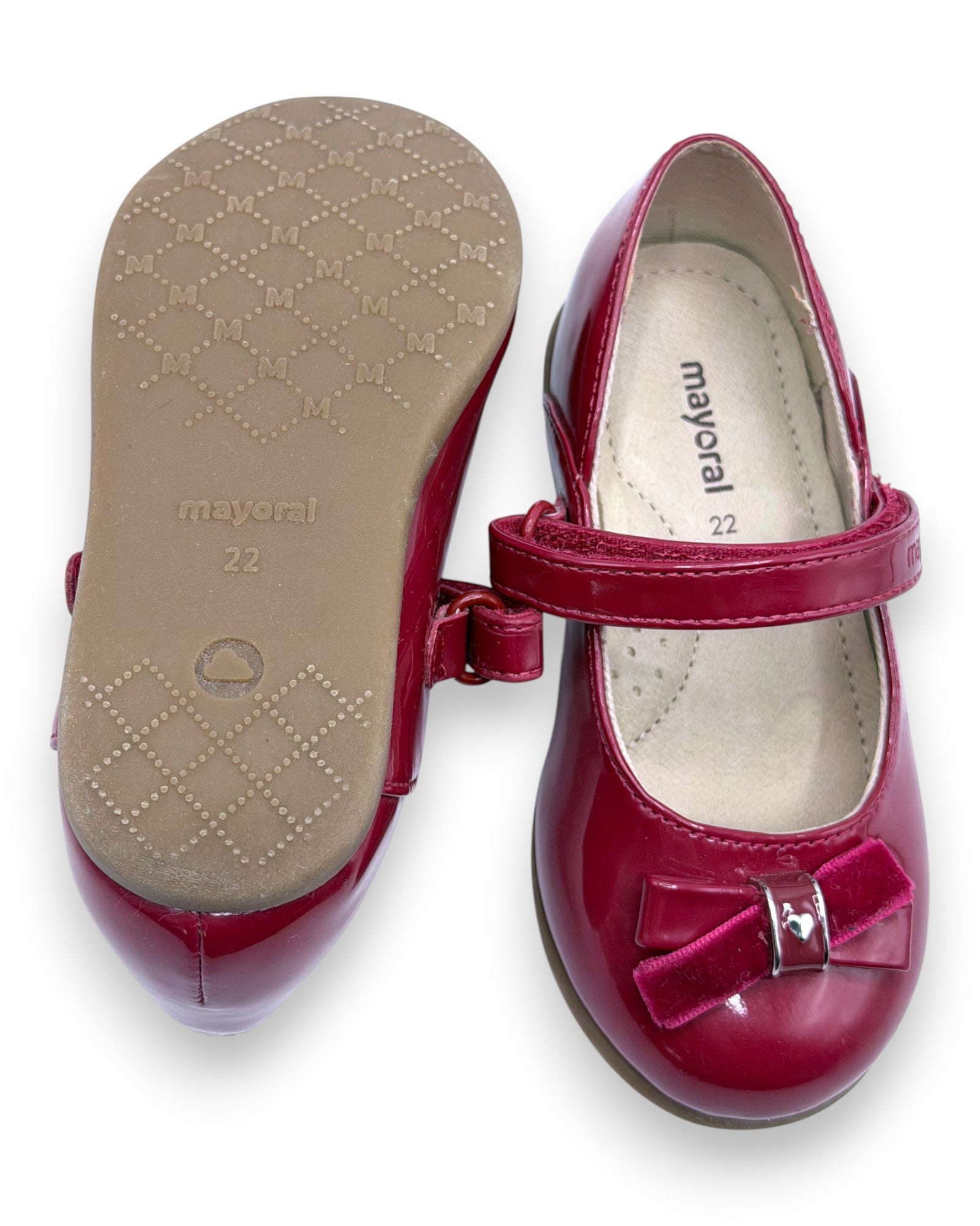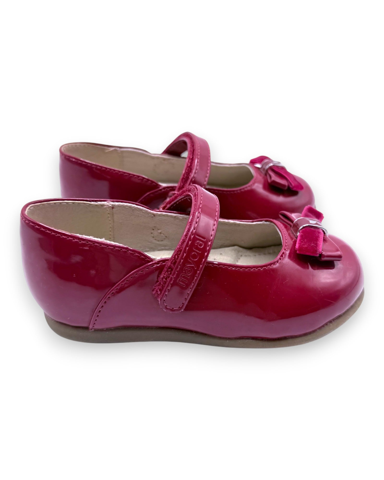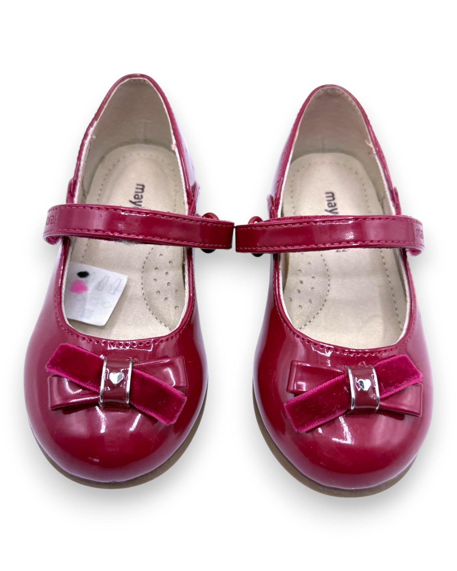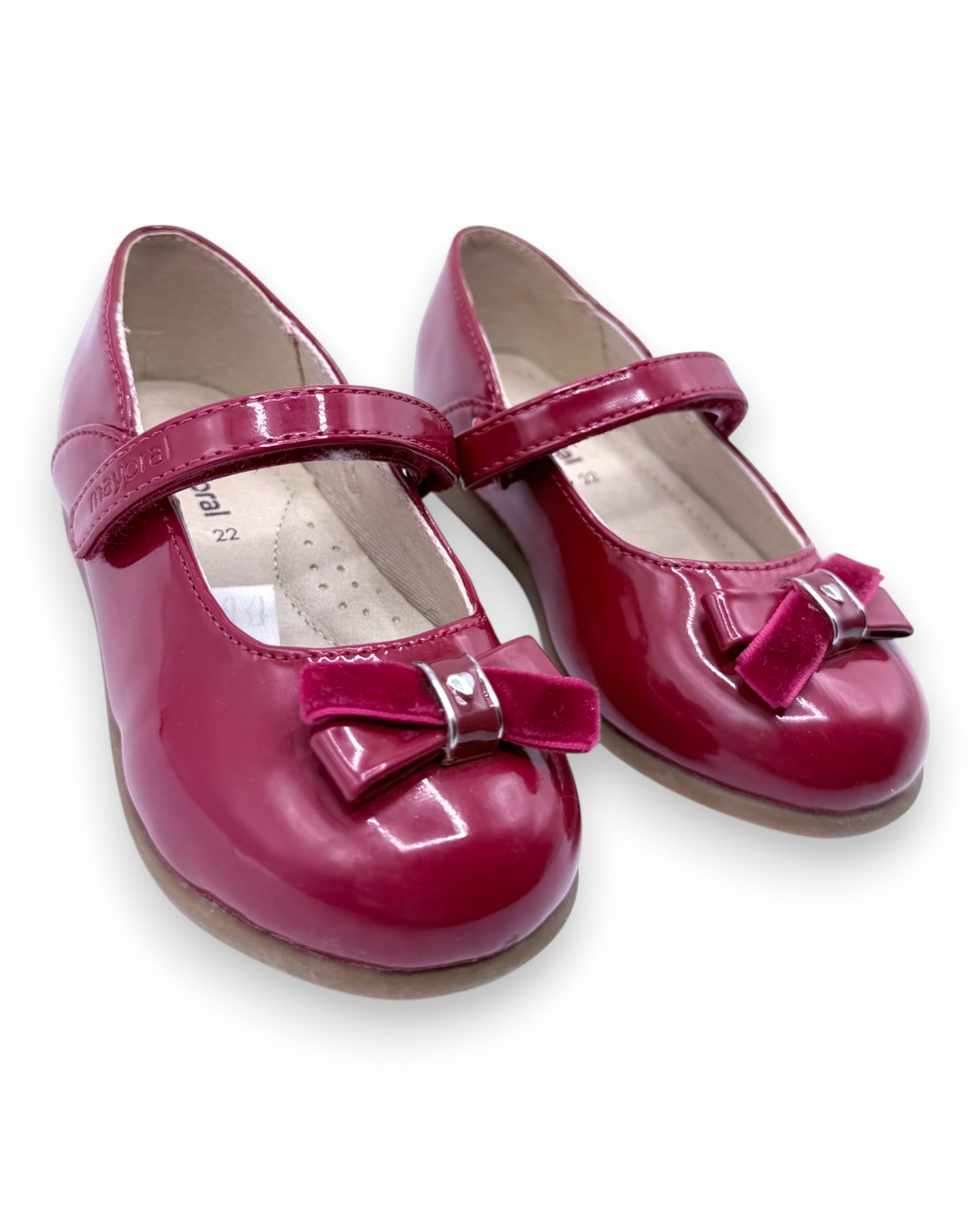 Sabrinas vermelhas de verniz da Mayoral. Fecho em velcro.