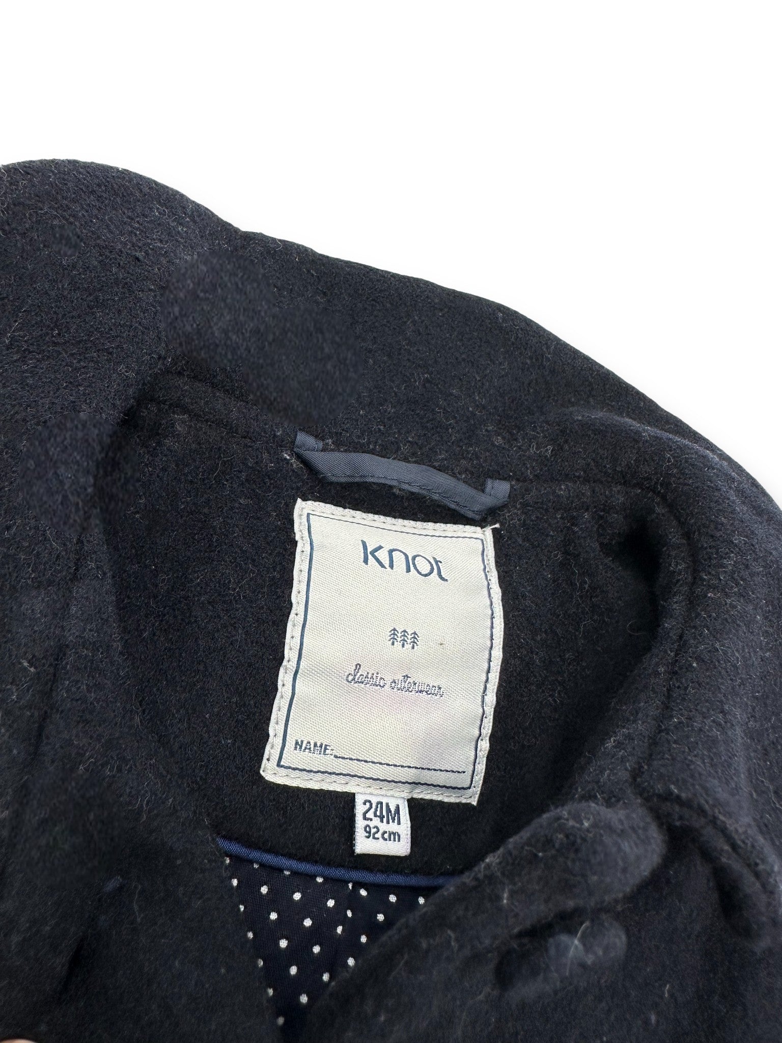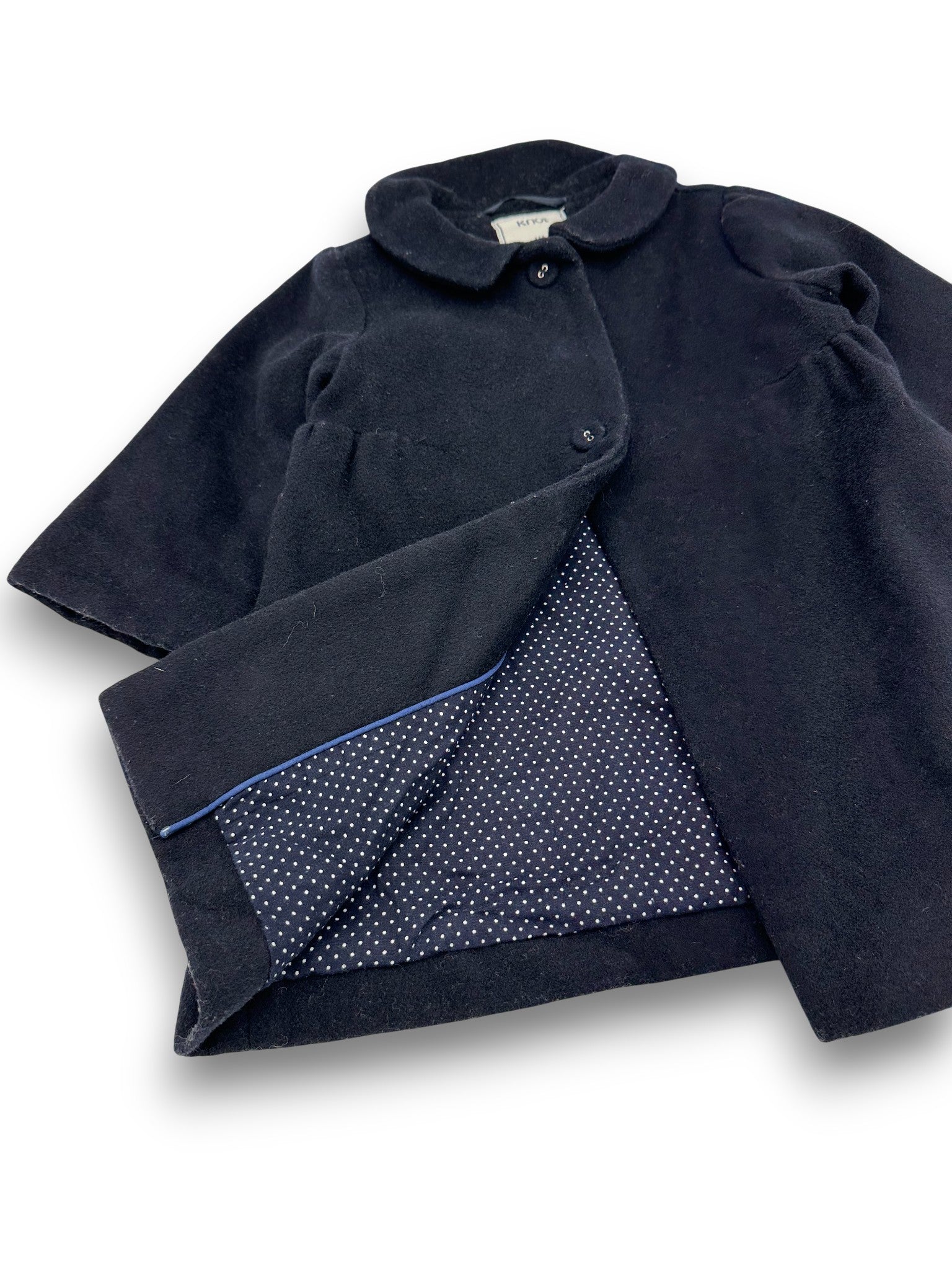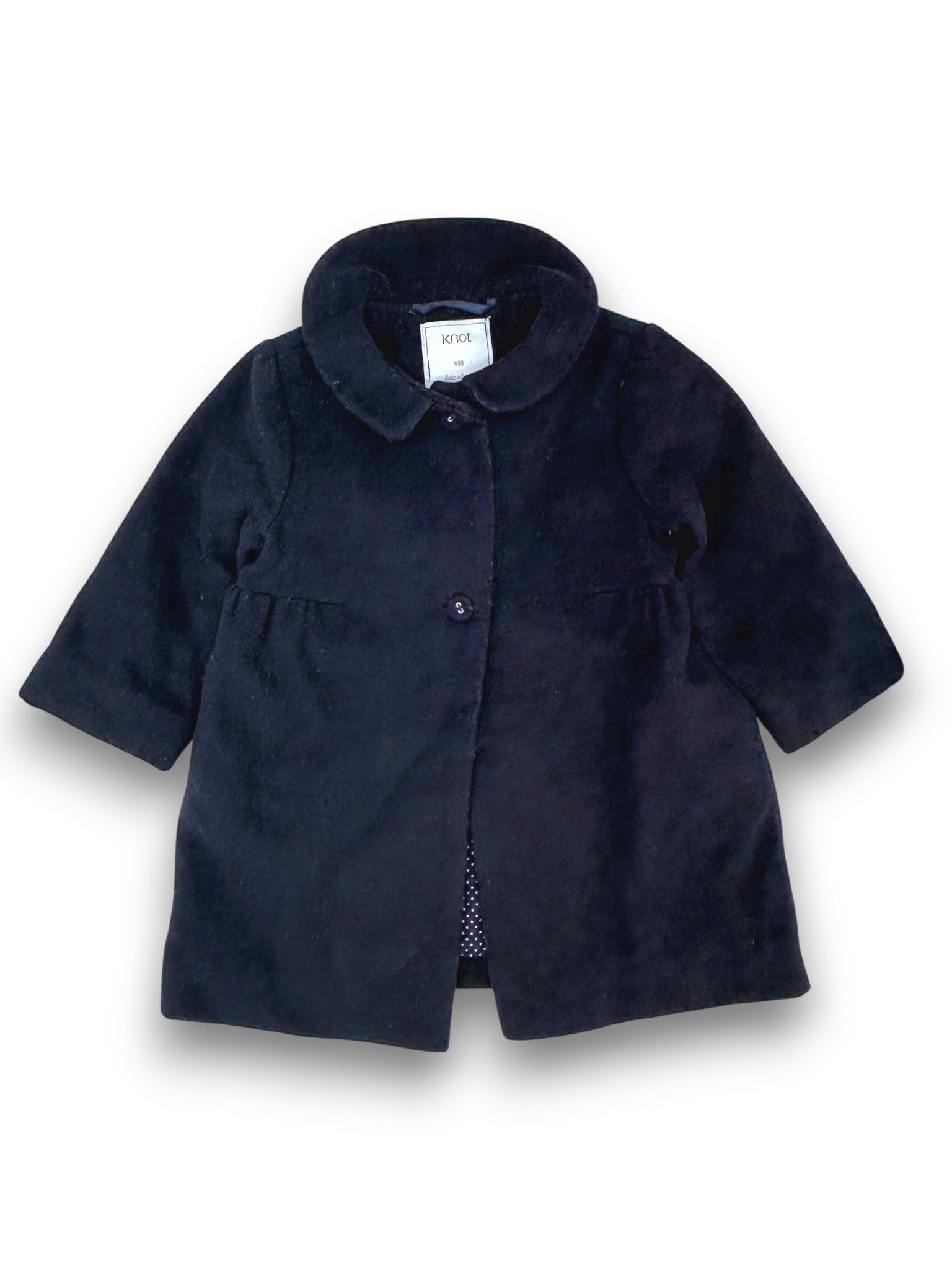 Sobretudo azul-escuro em fazenda, com forro, da marca Knot.