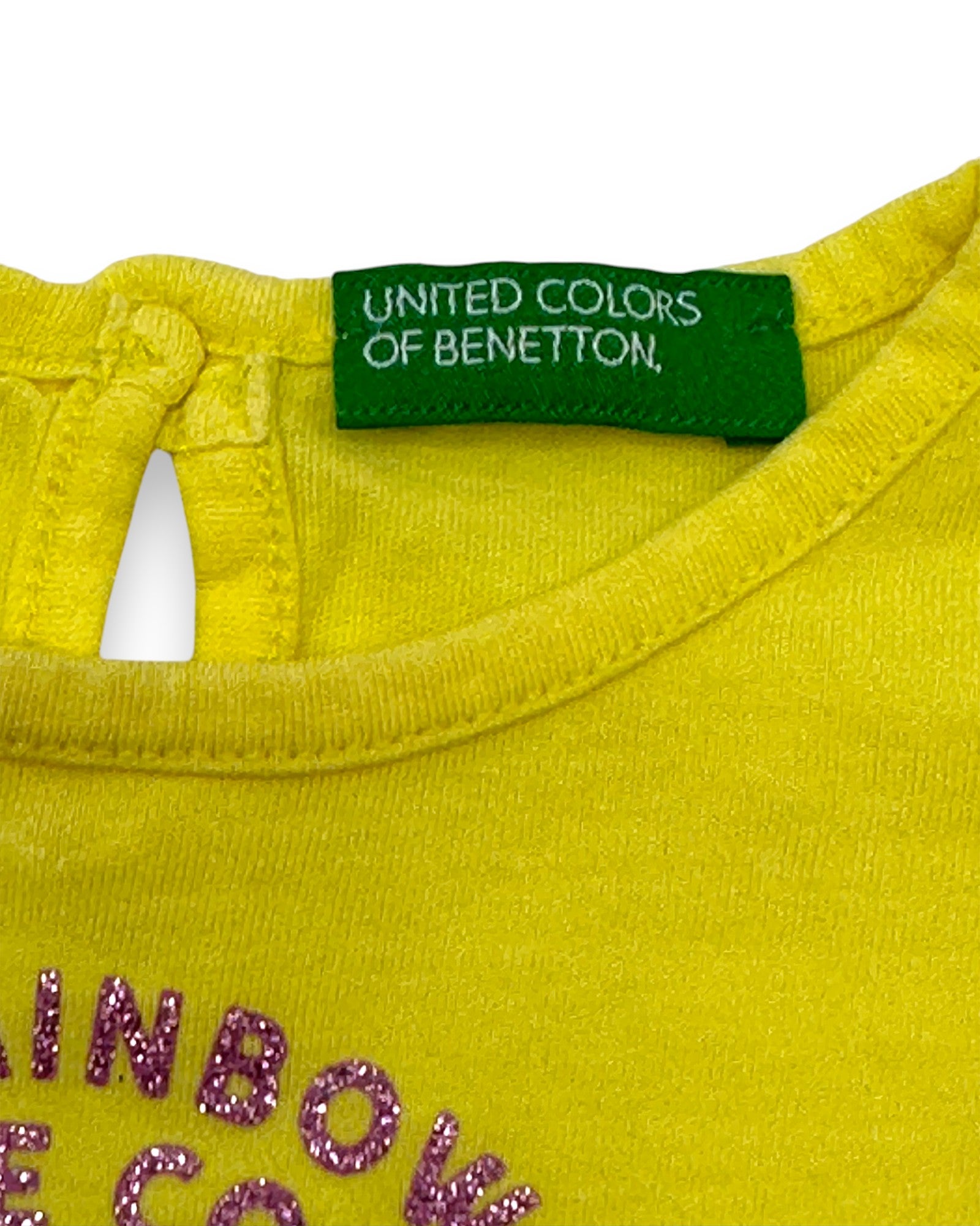 T-shirt amarela de mangas curtas com folhos, da Benetton.