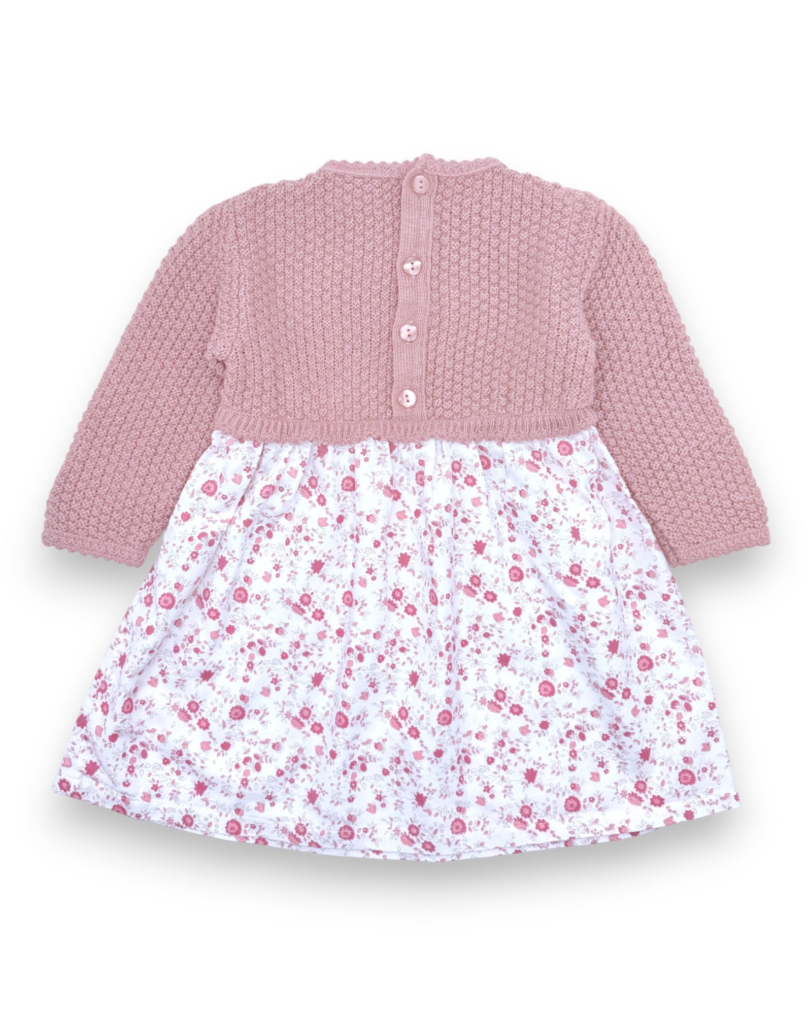 Vestido combinado de malha rosa da marca Isabella Babywear.