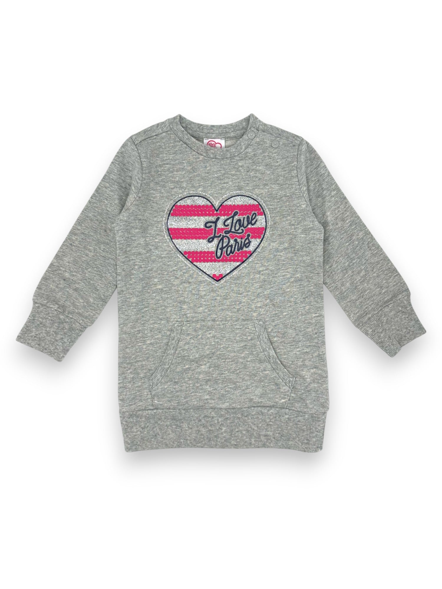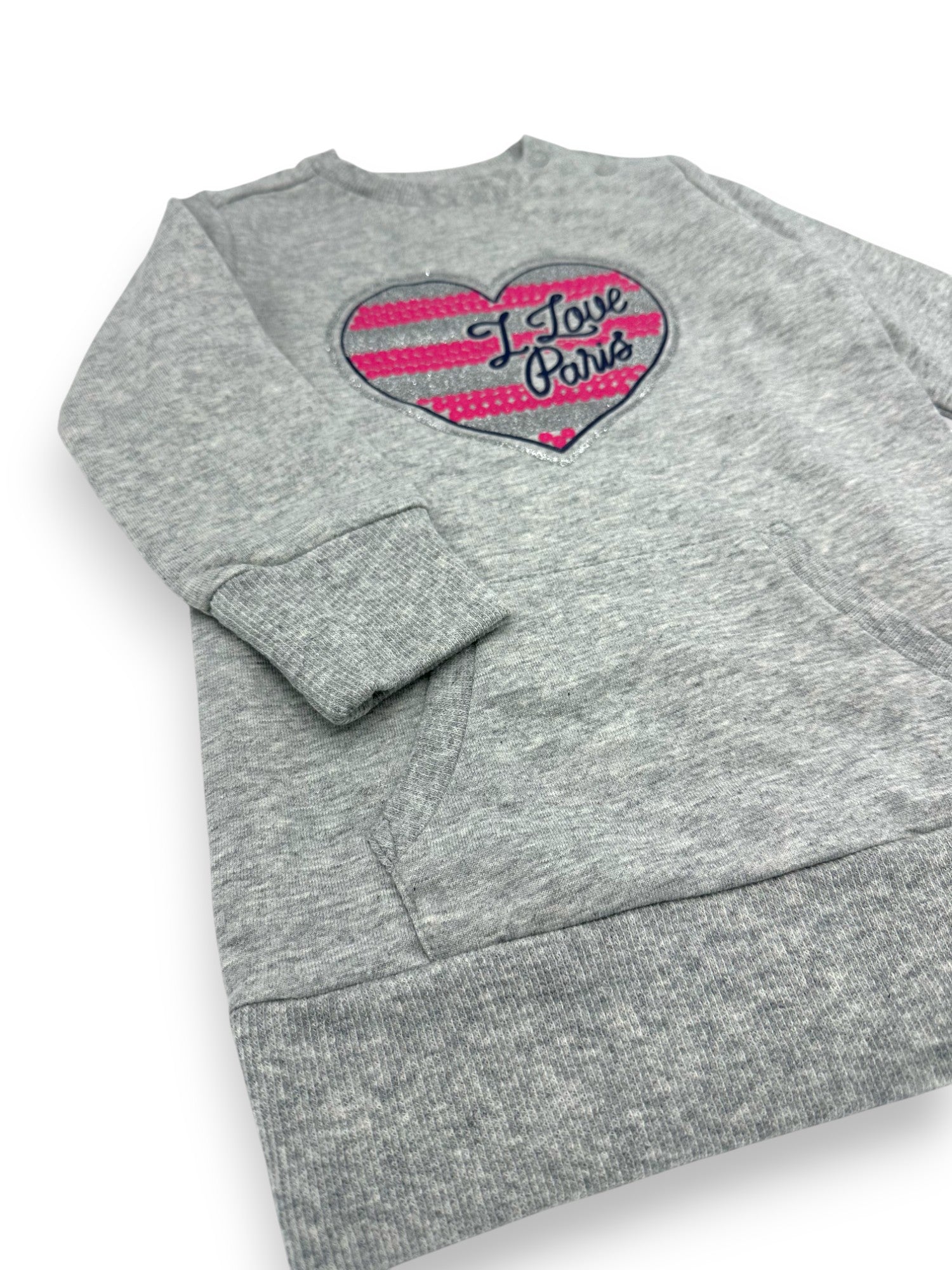 Gray sweater-style dress with glittery illustration by Chicco.