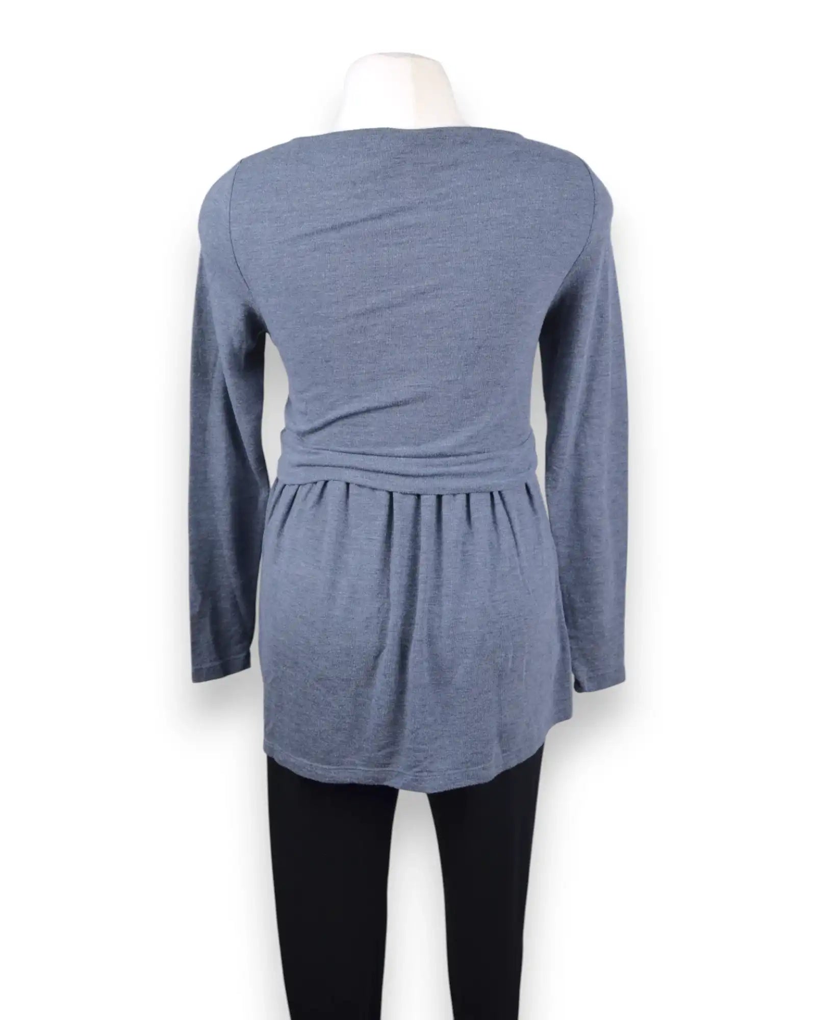 Blusa gris de manga larga de fácil acceso para la lactancia.