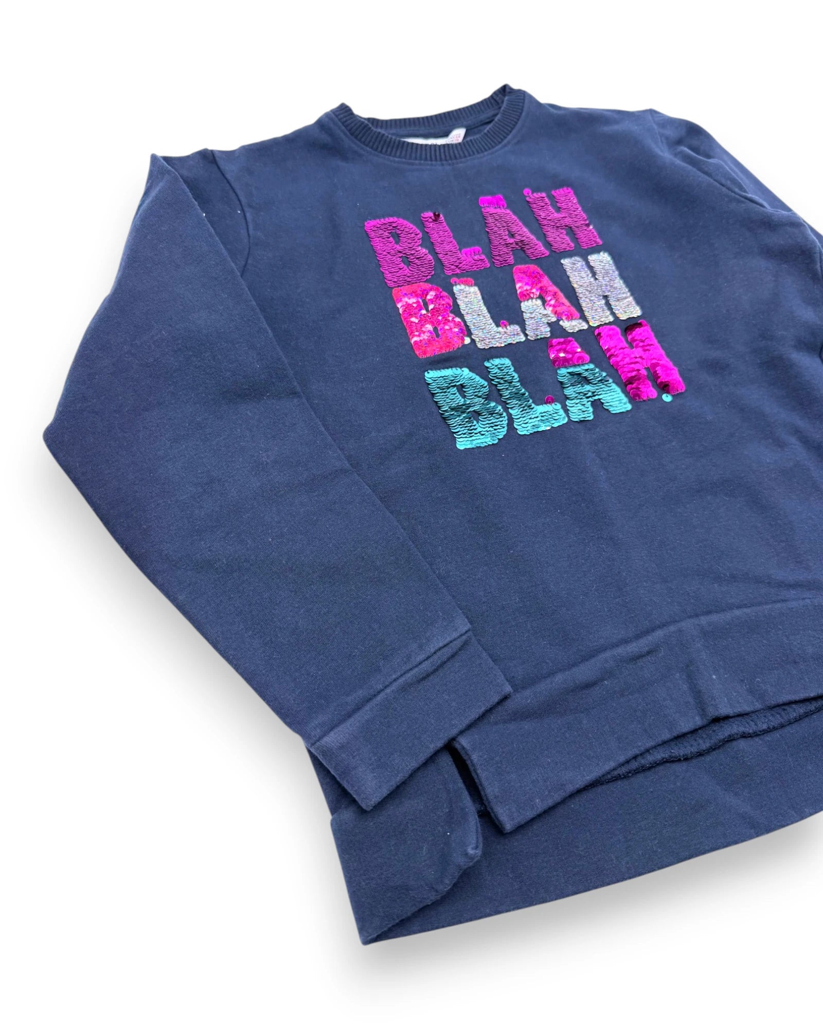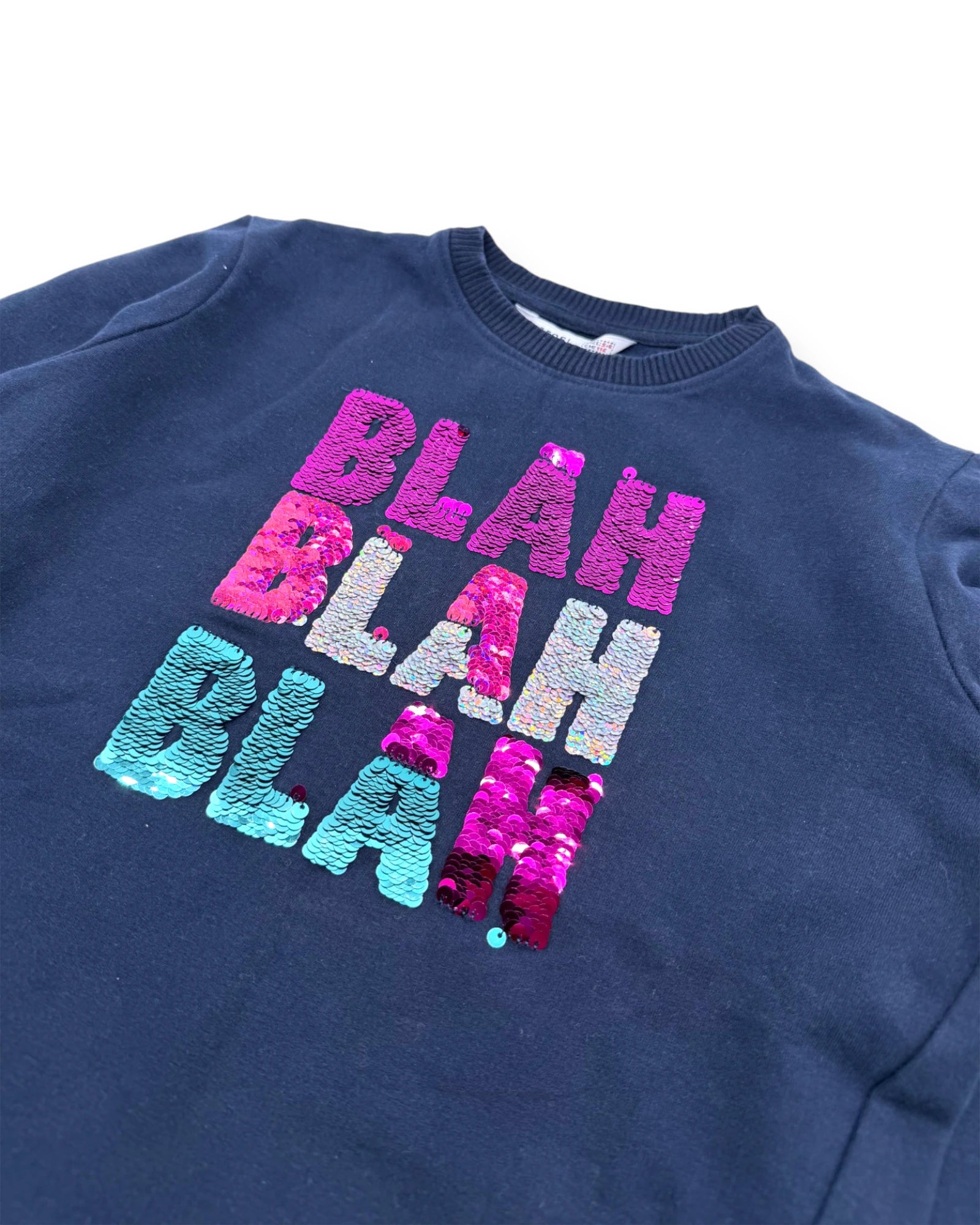 Altura: 116 cm. Suéter azul con lentejuelas, de Tiffosi.