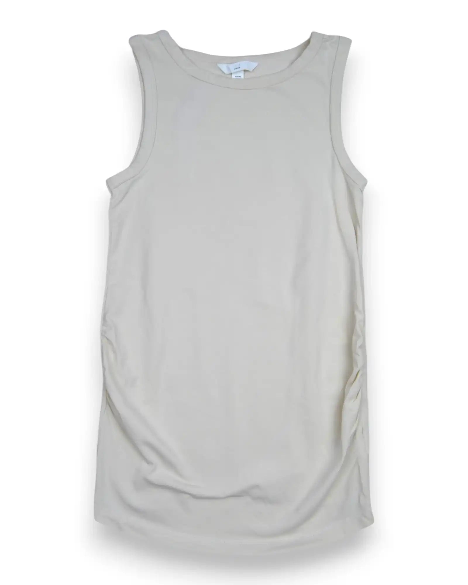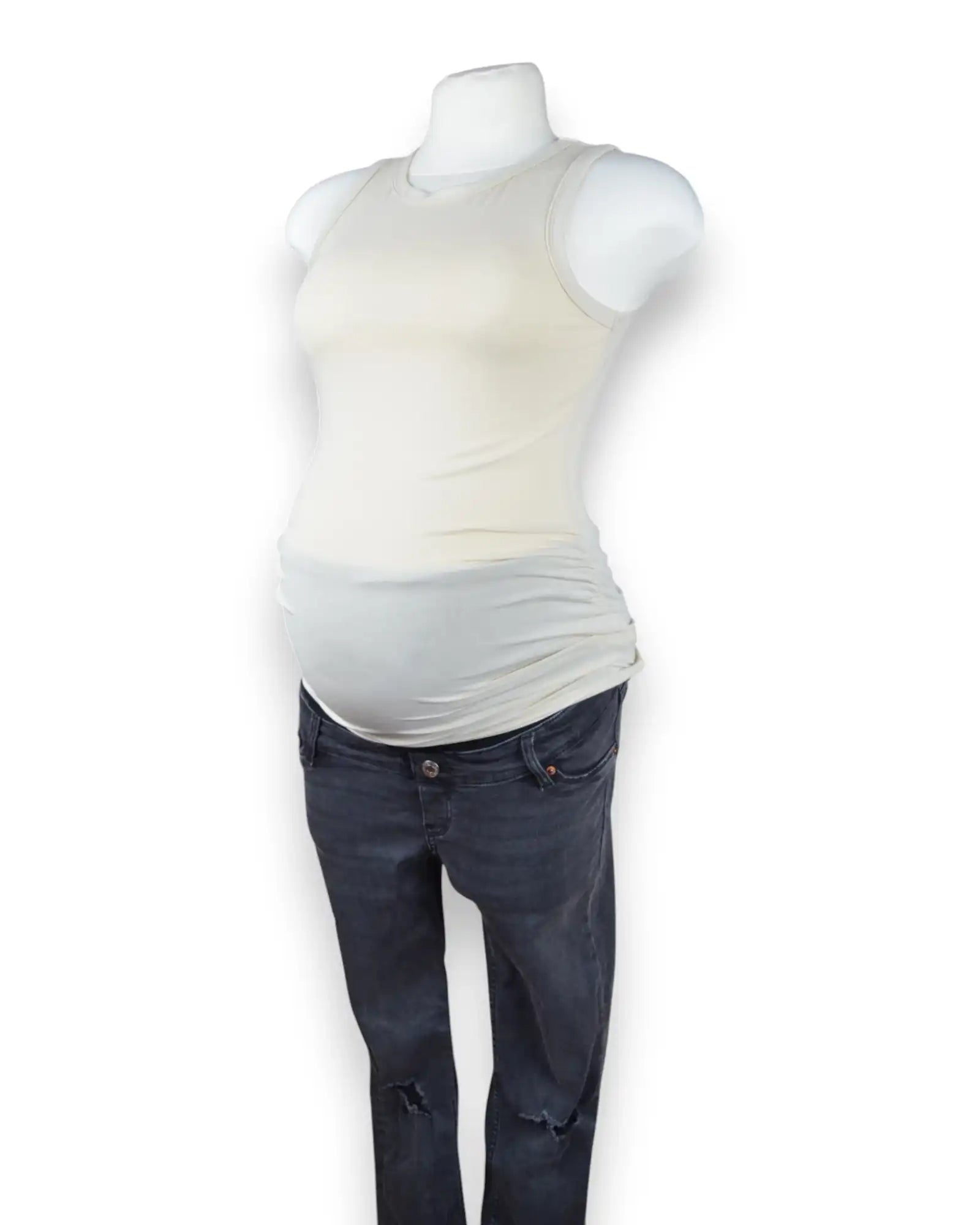 Camiseta beige sin mangas, de algodón elástico, para embarazada.