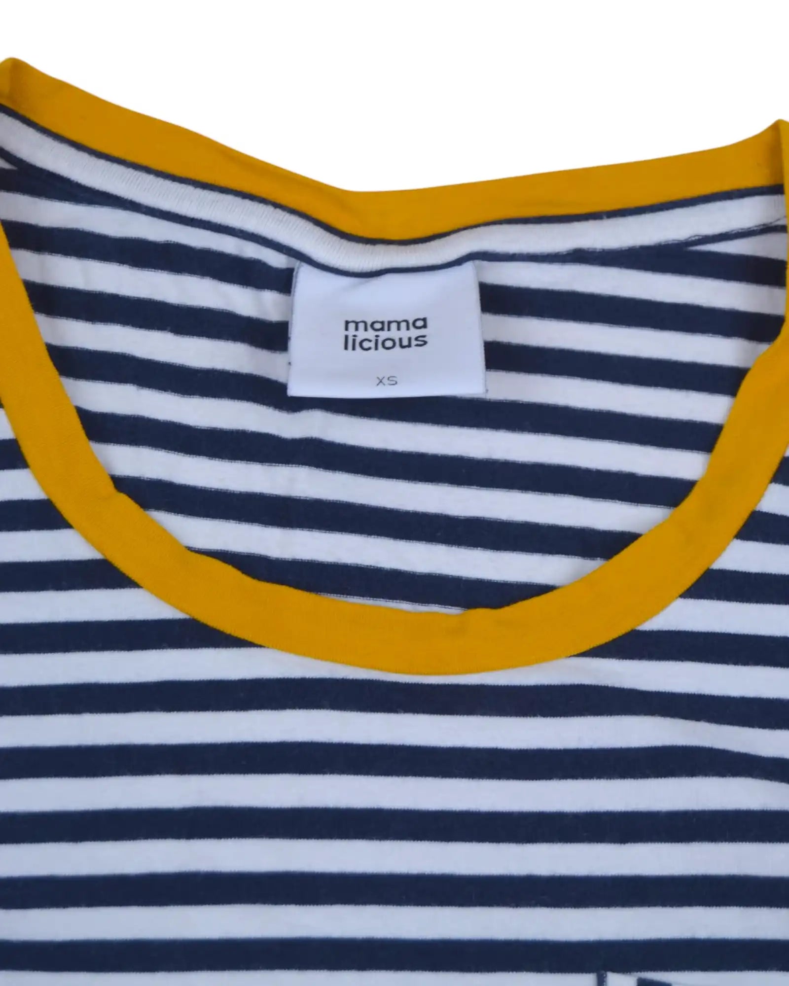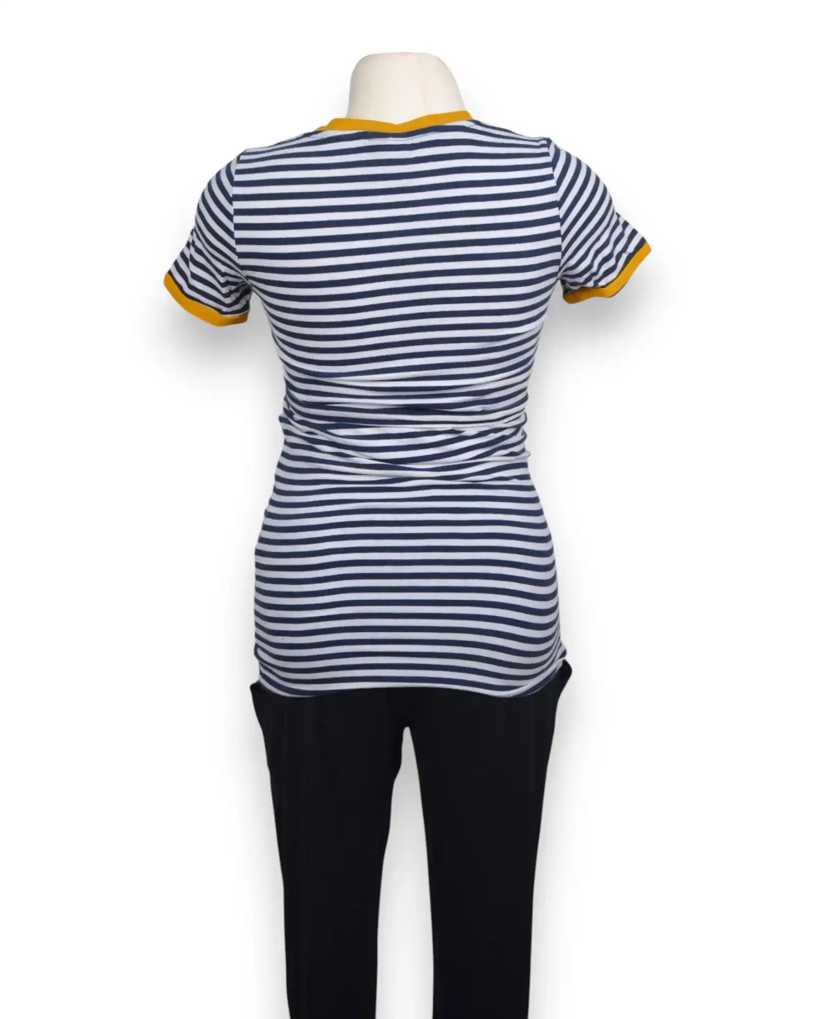 Camiseta a rayas, de manga corta y cinturón extraíble para embarazada.