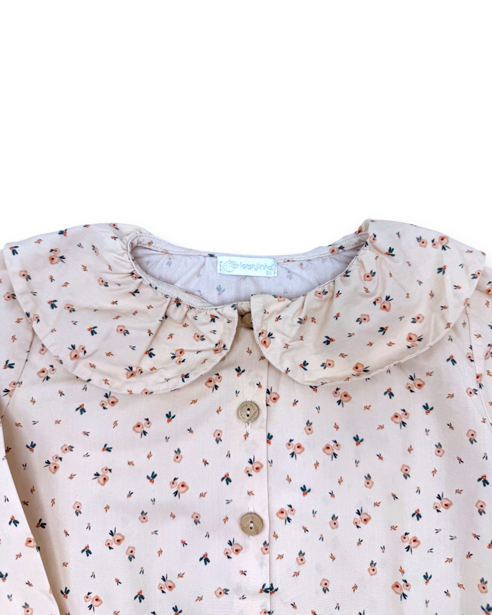 Blusa bege floral, da Laranjinha.