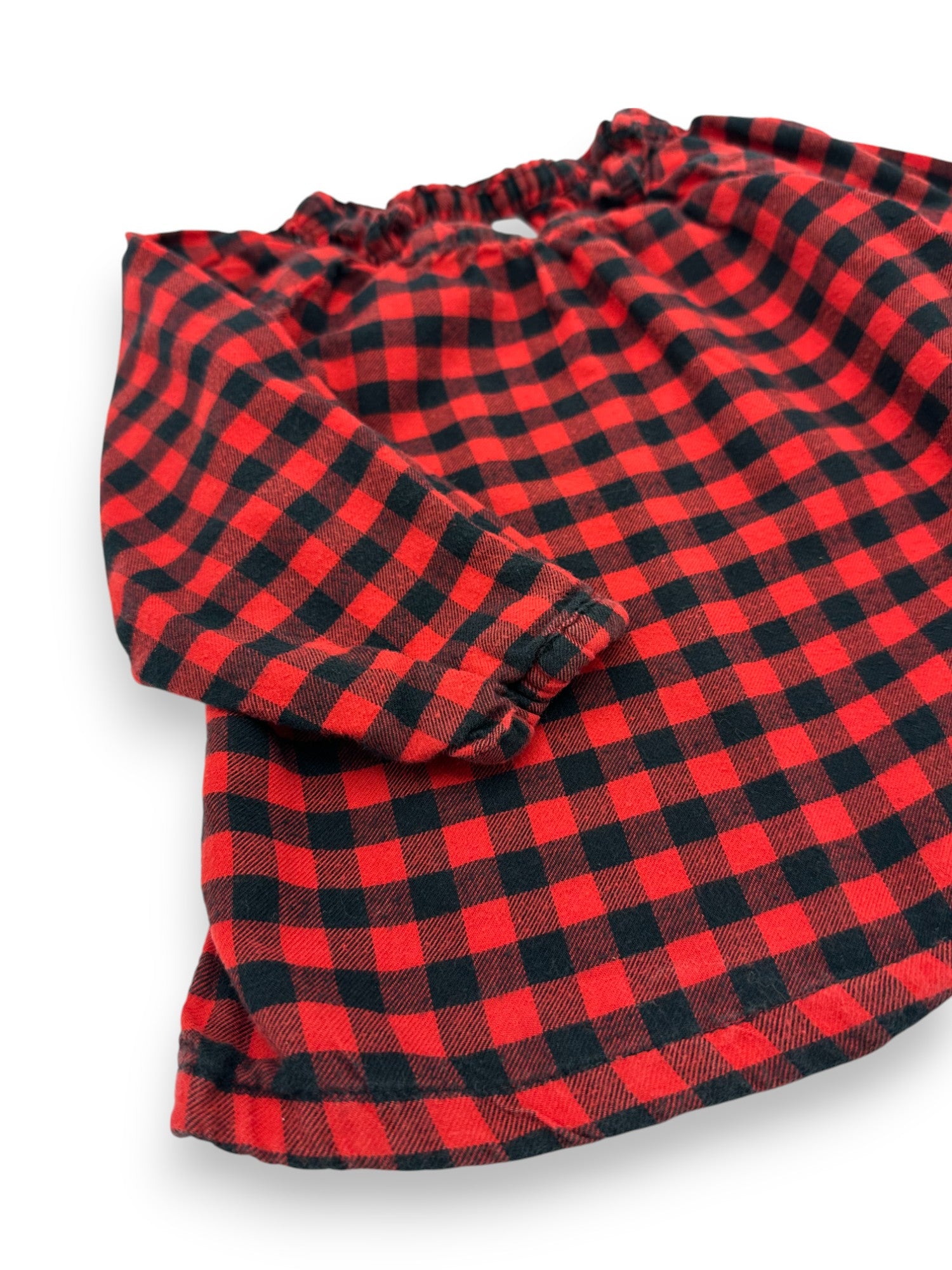Blusa xadrez vermelha em flanela, com gola e punhos elásticos, da Carter's.