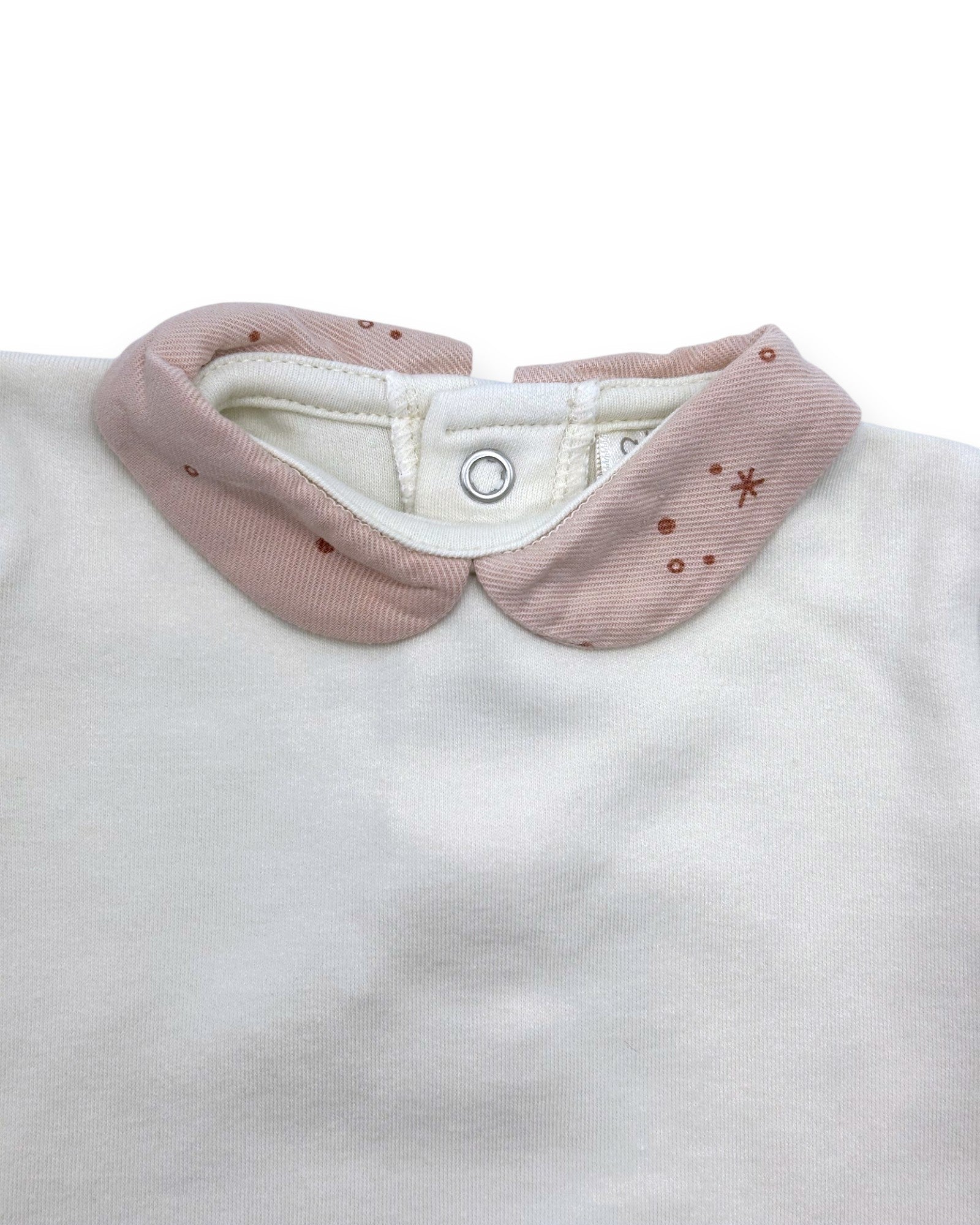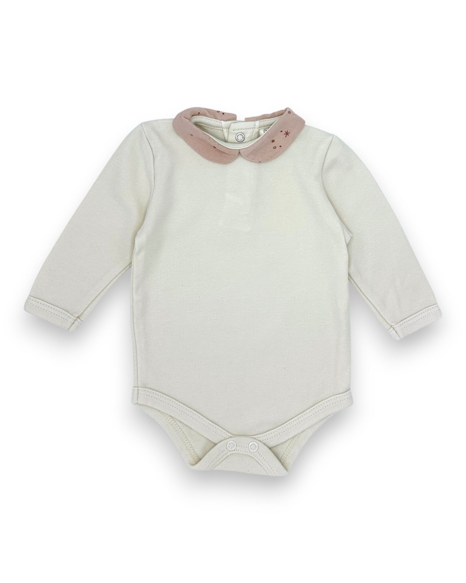 Body branco de mangas compridas, com gola, em algodão orgânico, da marca Gloop!