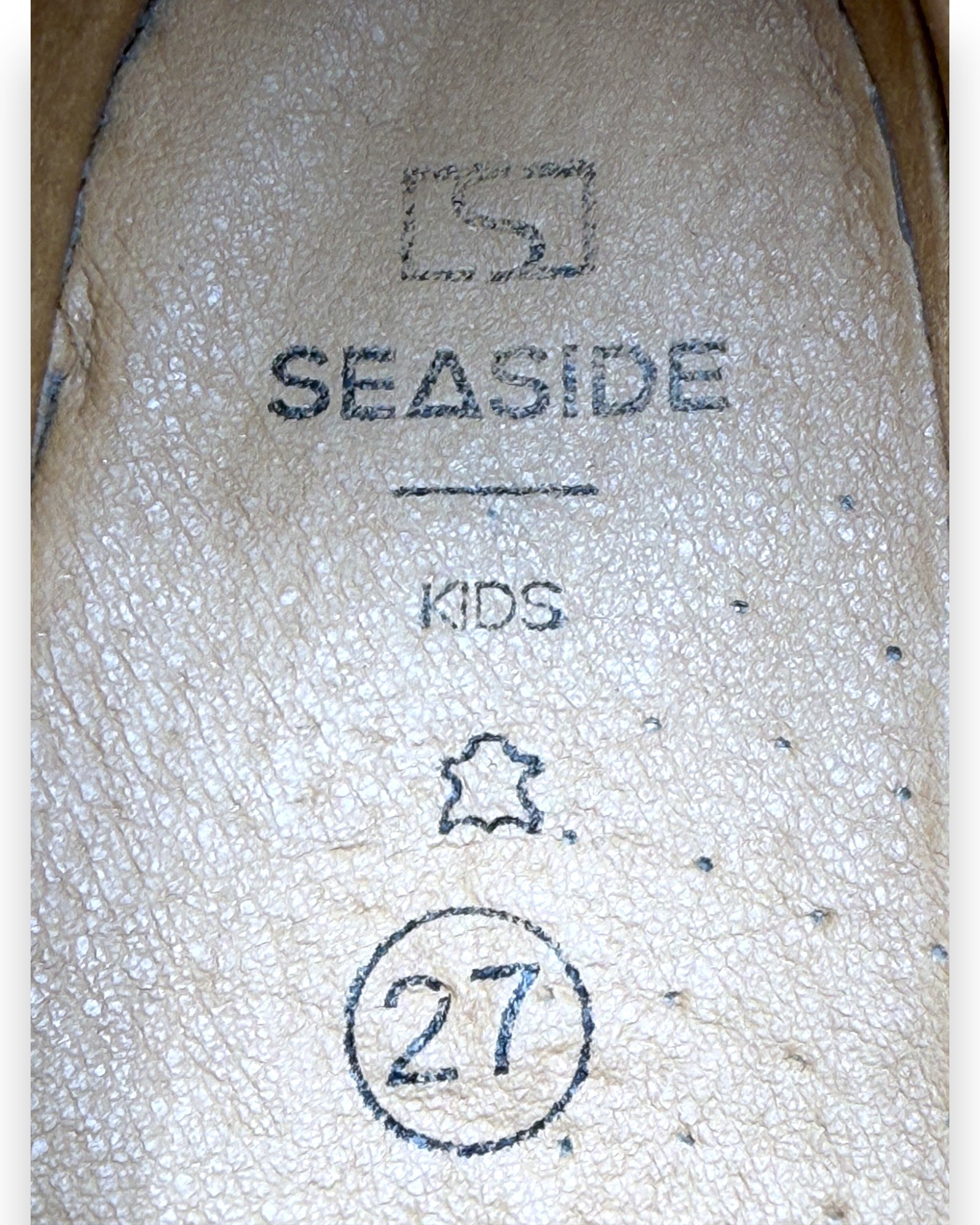 Botins castanhos em camurça, com fecho em velcro, da Seaside.