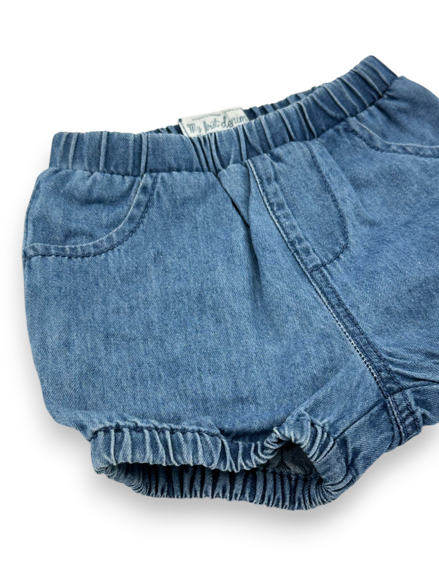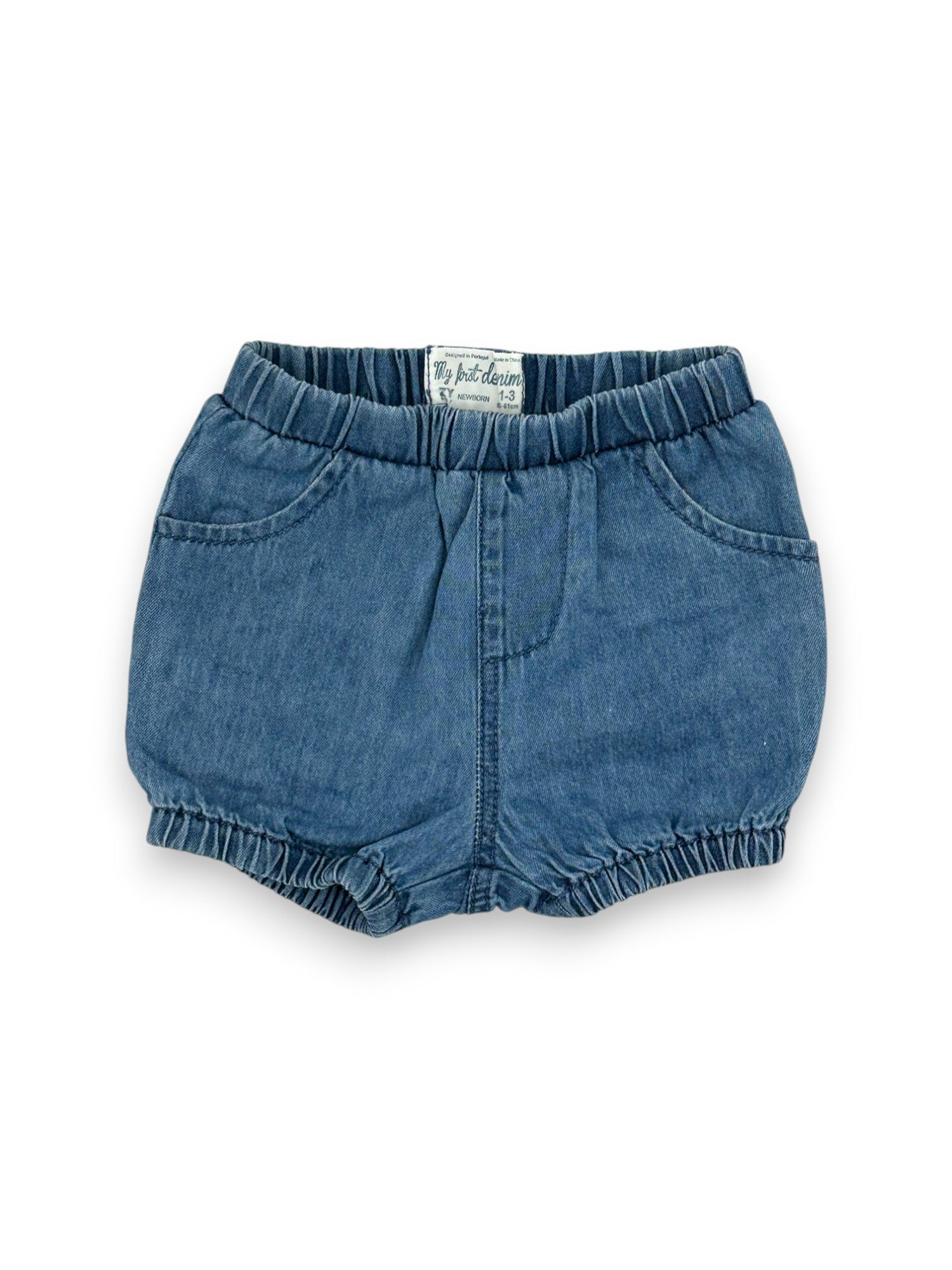 Calção de ganga da Zippy com elástrico nas pernas e cintura.