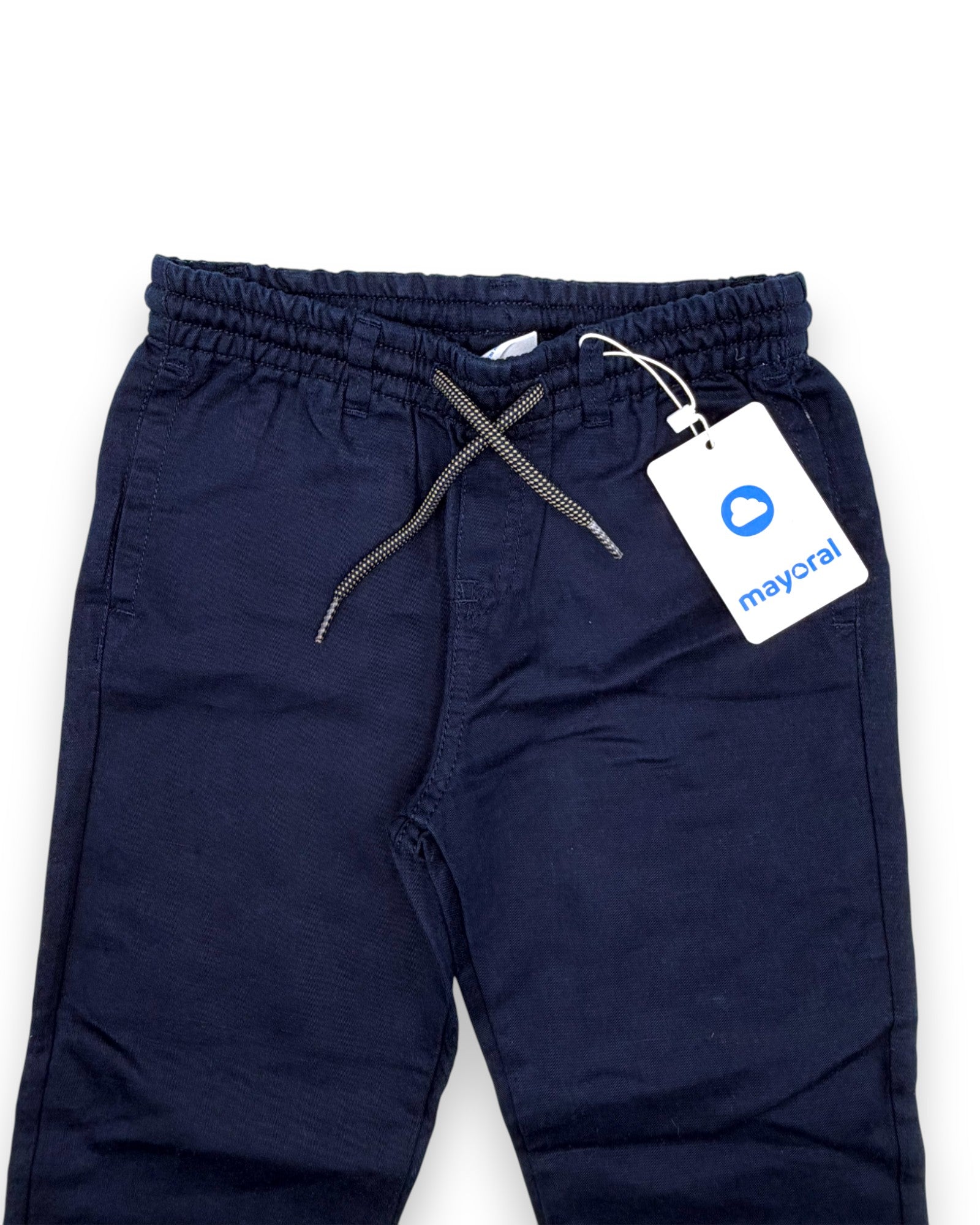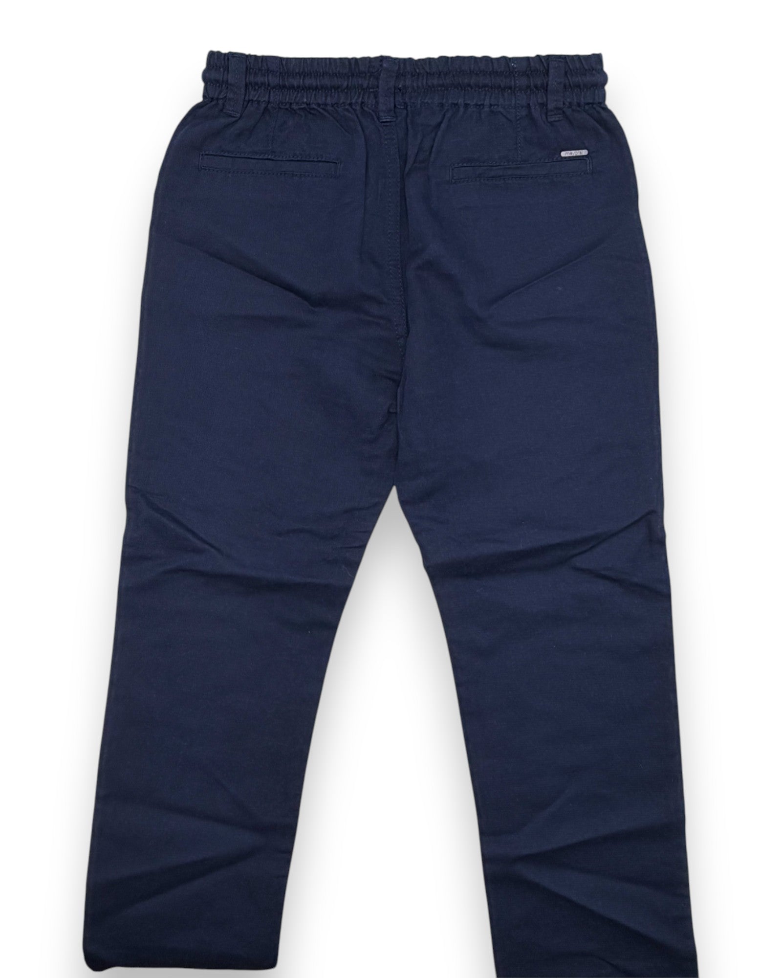 Calças chino azuis, com elástico na cintura, da Mayoral.