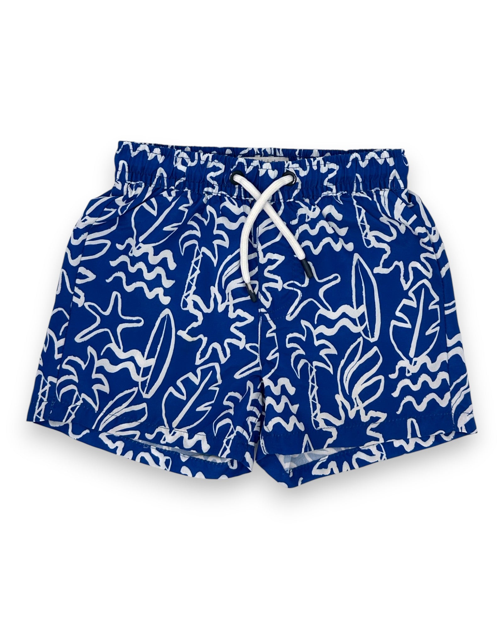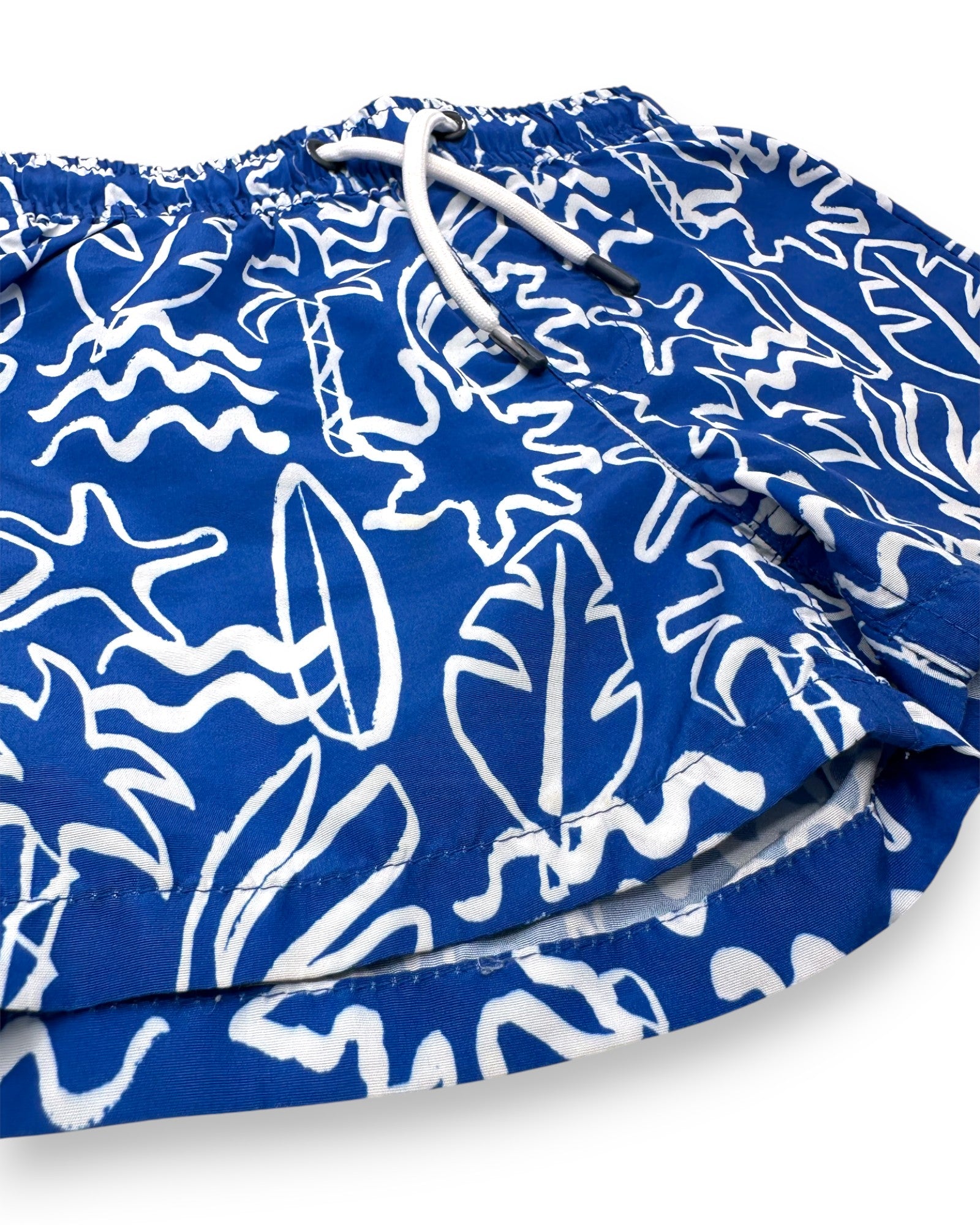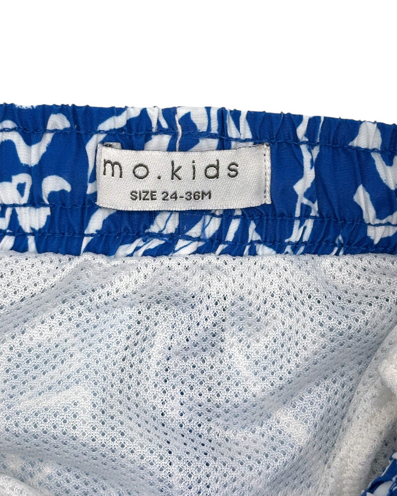 Calções de banho azuis, com forro em rede, da MO Kids.