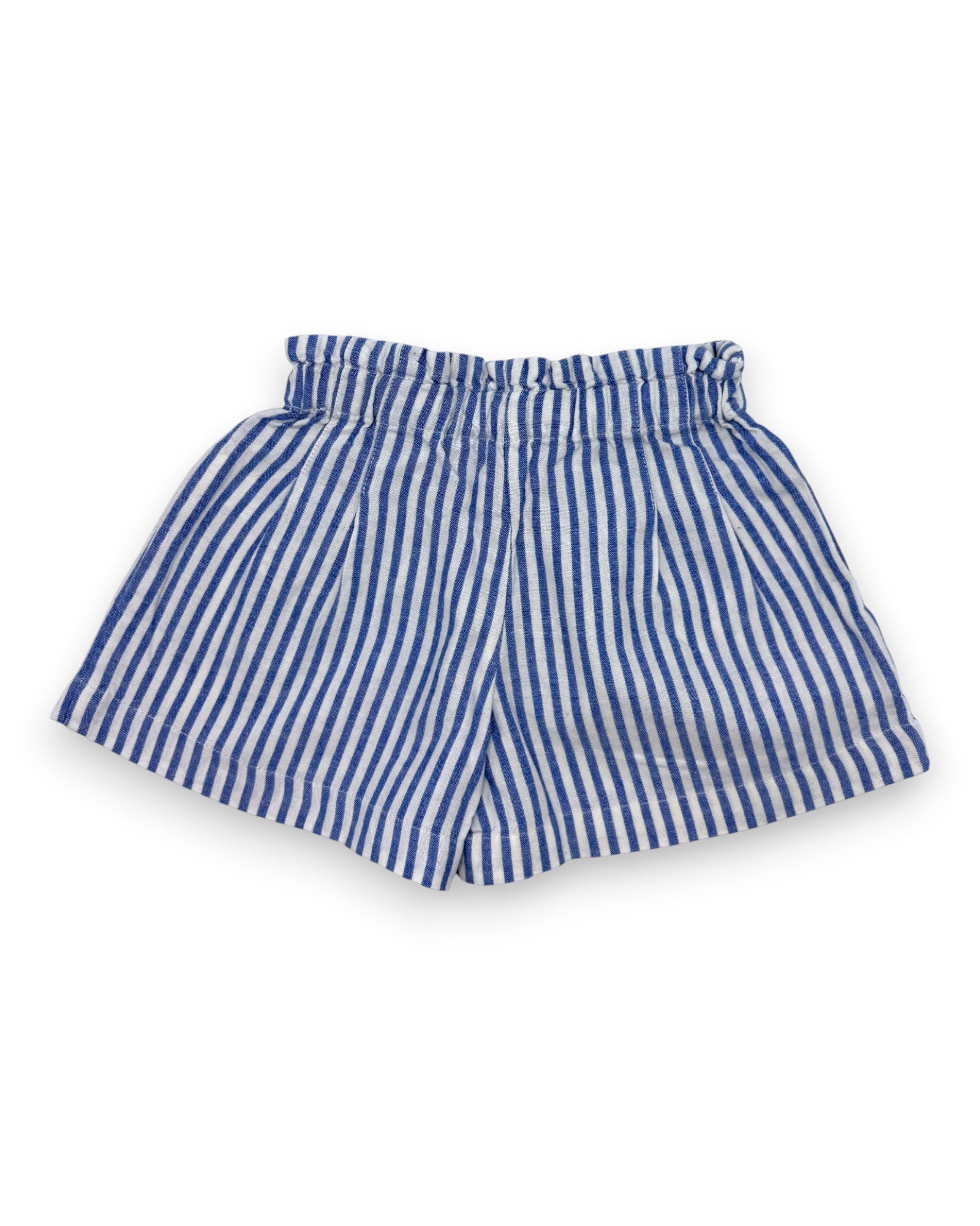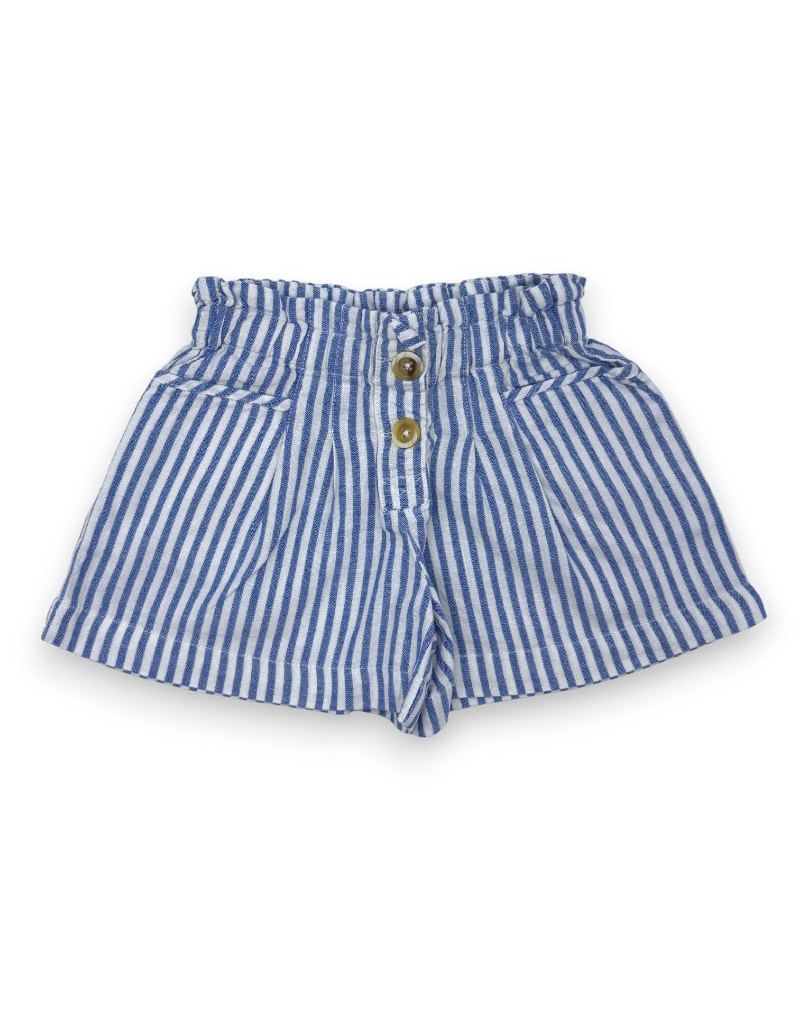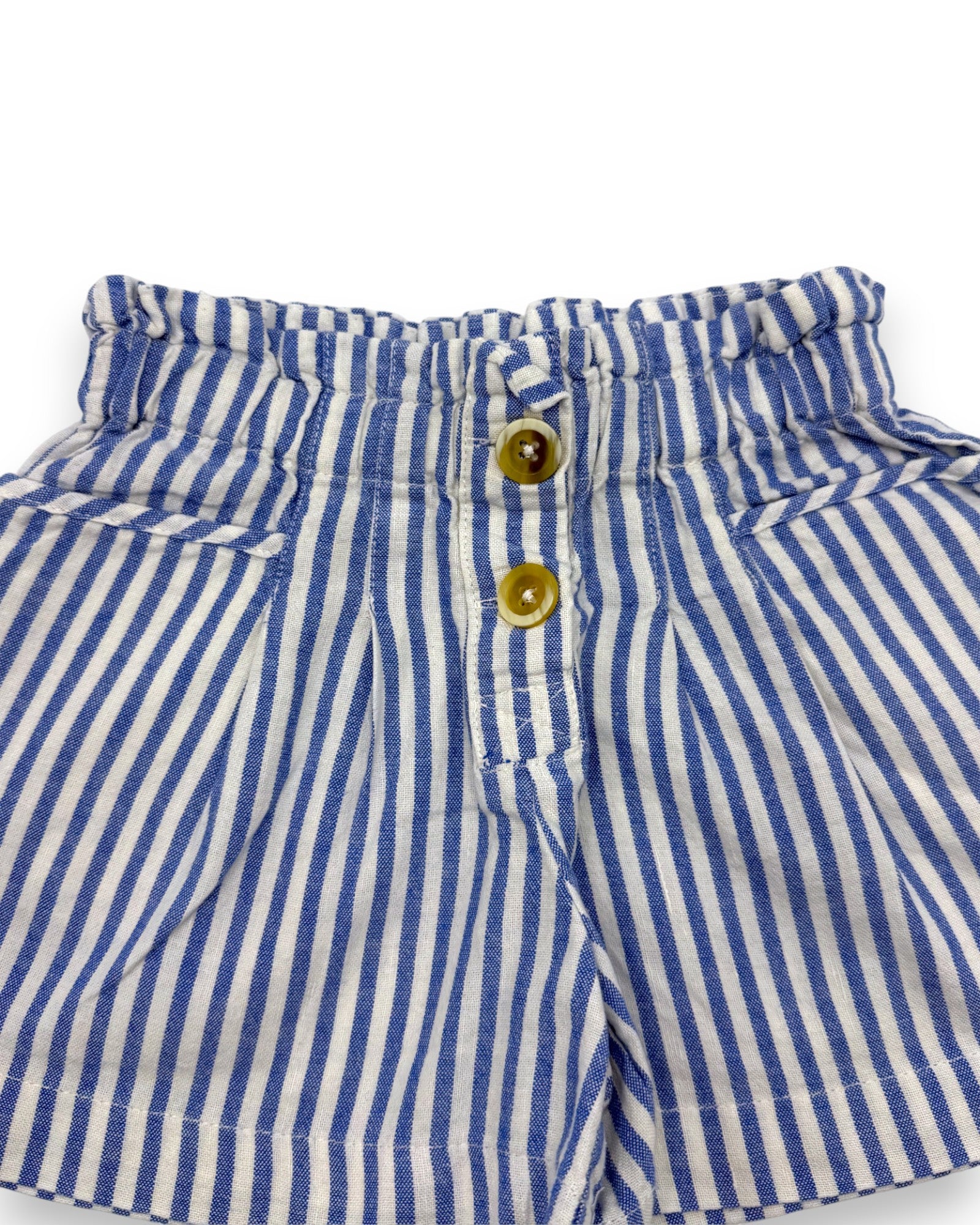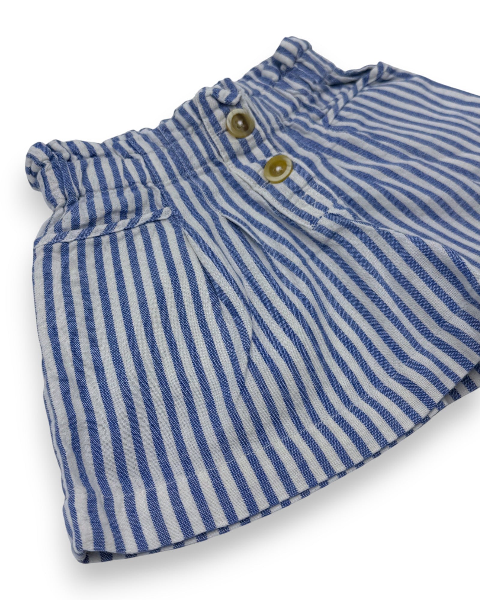 Calções às riscas azuis, estilo paperbag, da Zara.