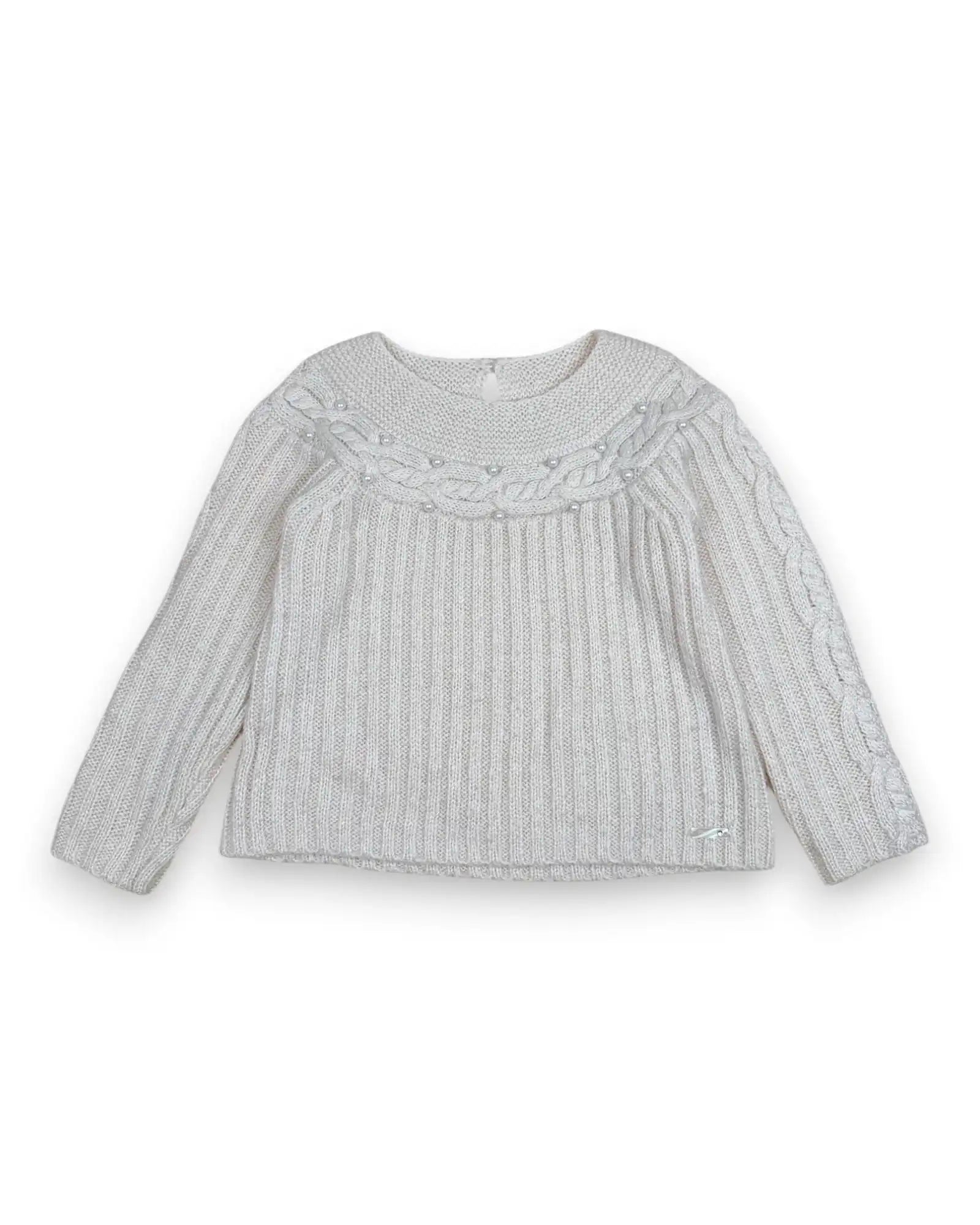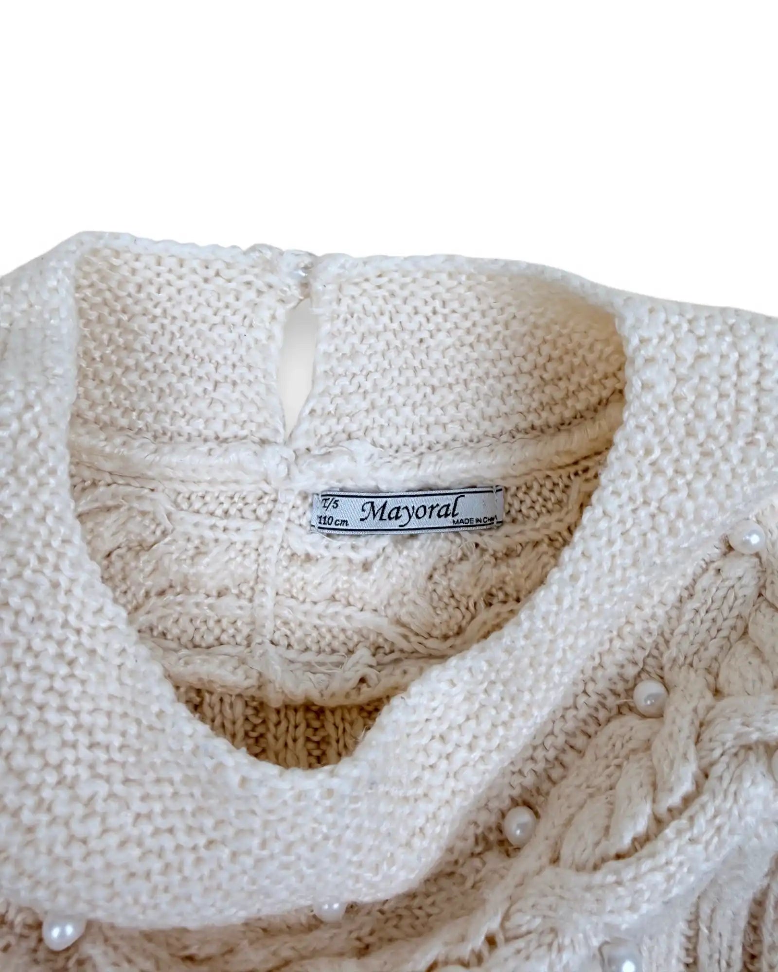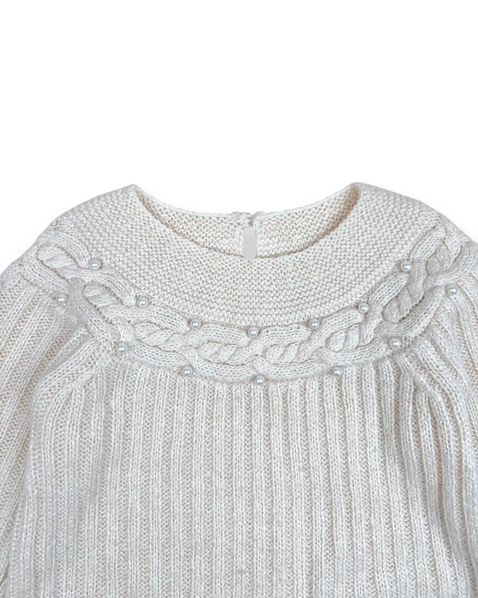 Altura: 110 cm. Camisola branca de malha, decorada com pequenas pérolas artificiais. Em ótimo estado.