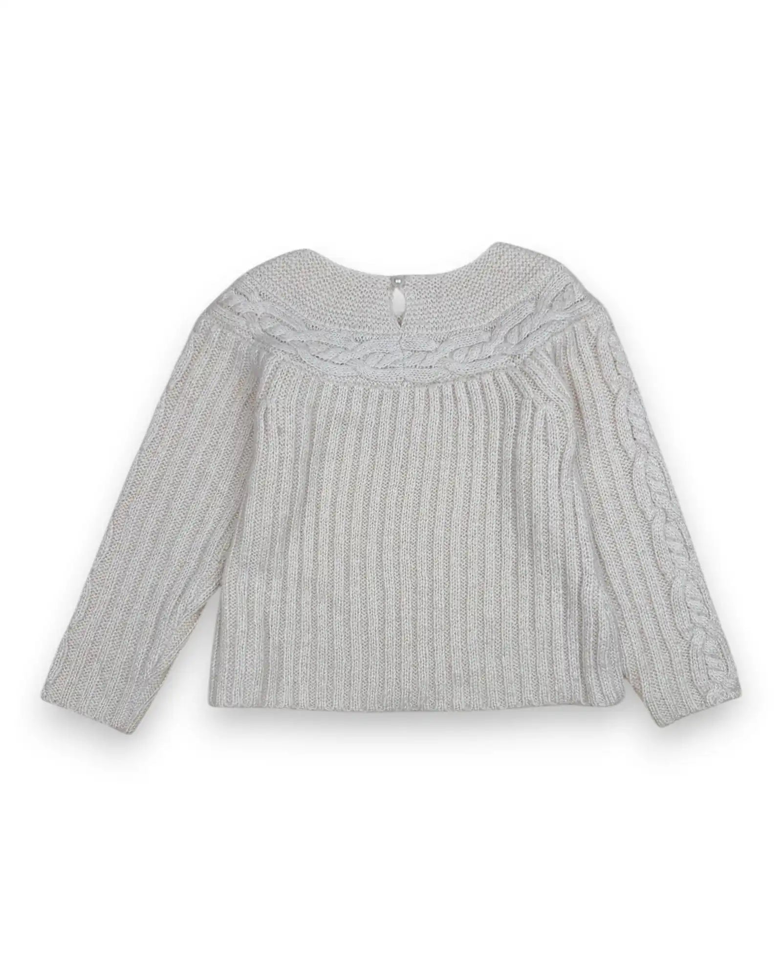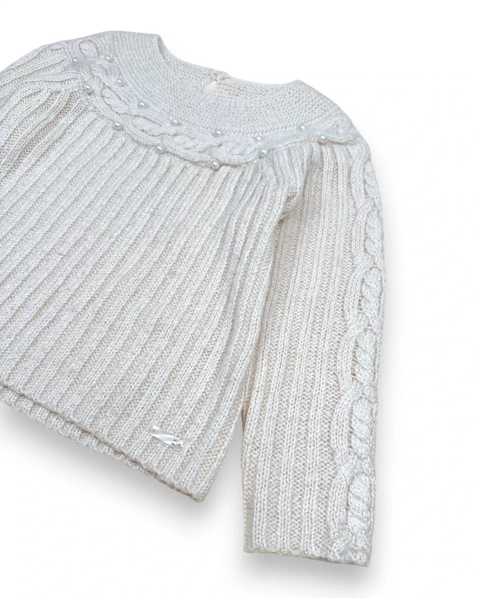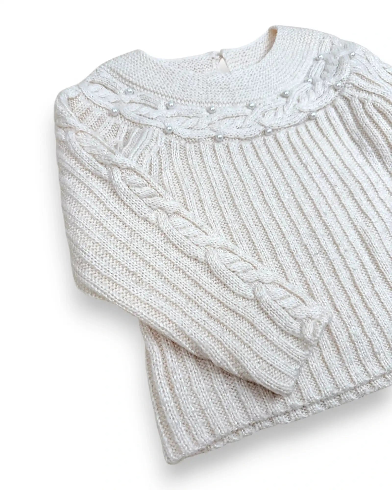 Altura: 110 cm. Camisola branca de malha, decorada com pequenas pérolas artificiais. Em ótimo estado.