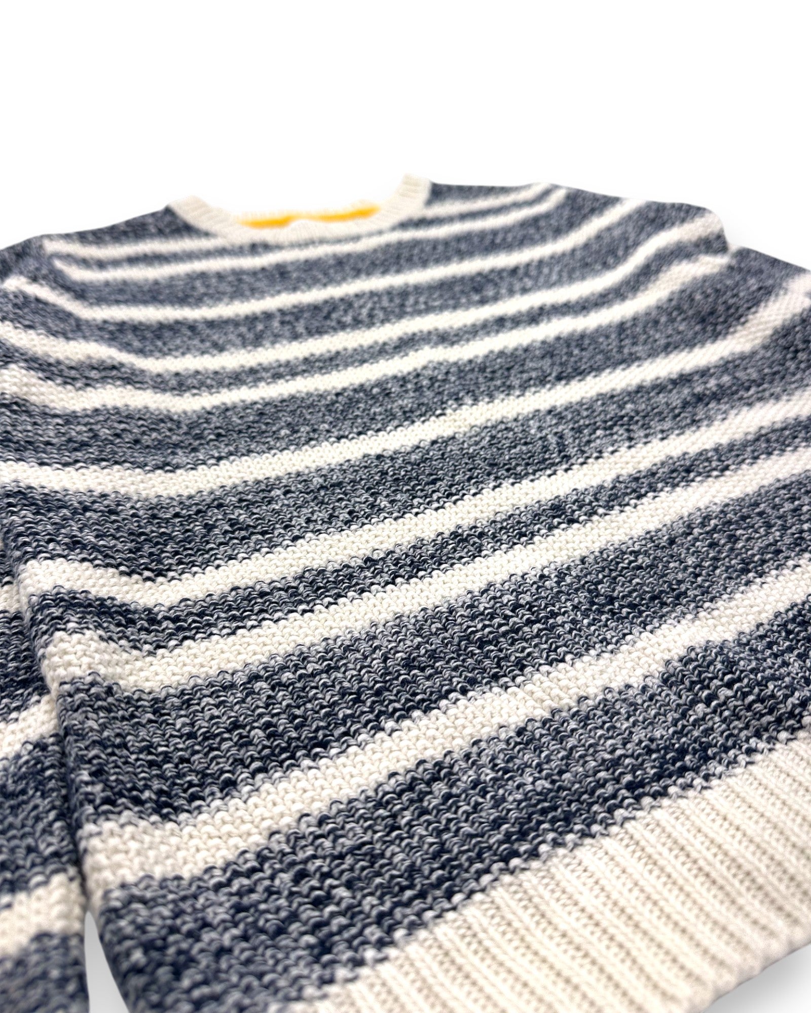 Camisola de malha às riscas azuis, do El Corte Inglés.
