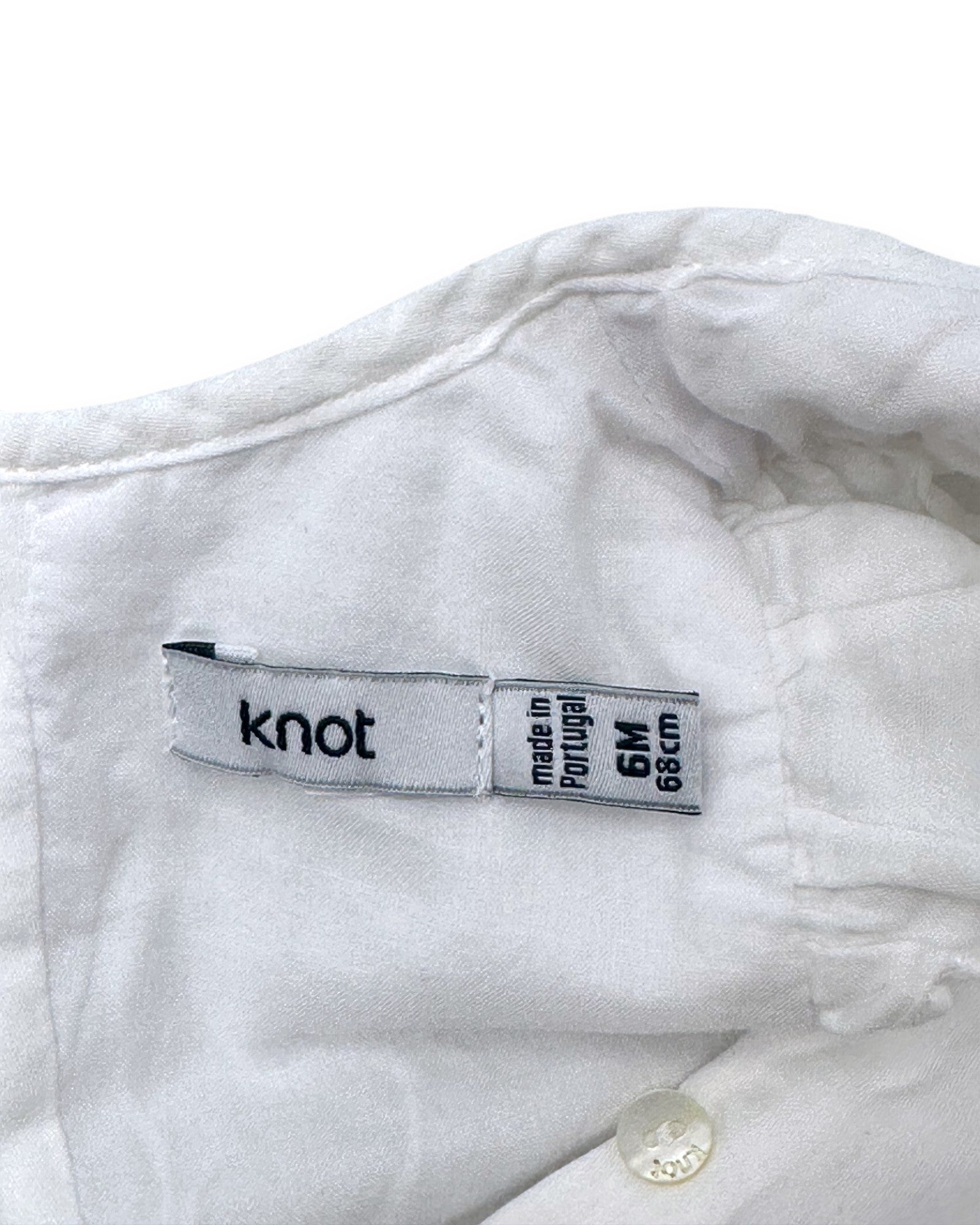 Conjunto vestido com forro em algodão e tapa fraldas branco, da Knot.