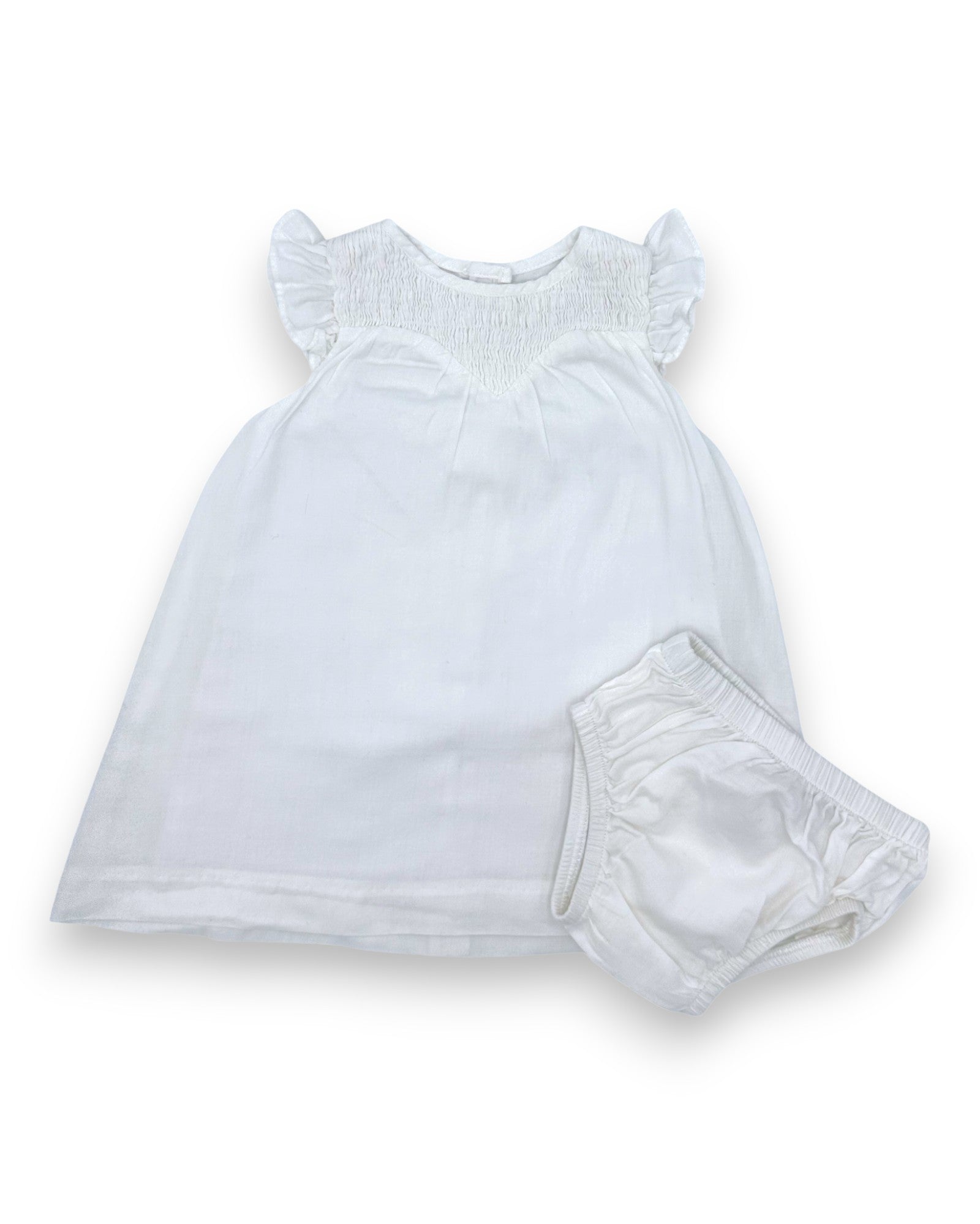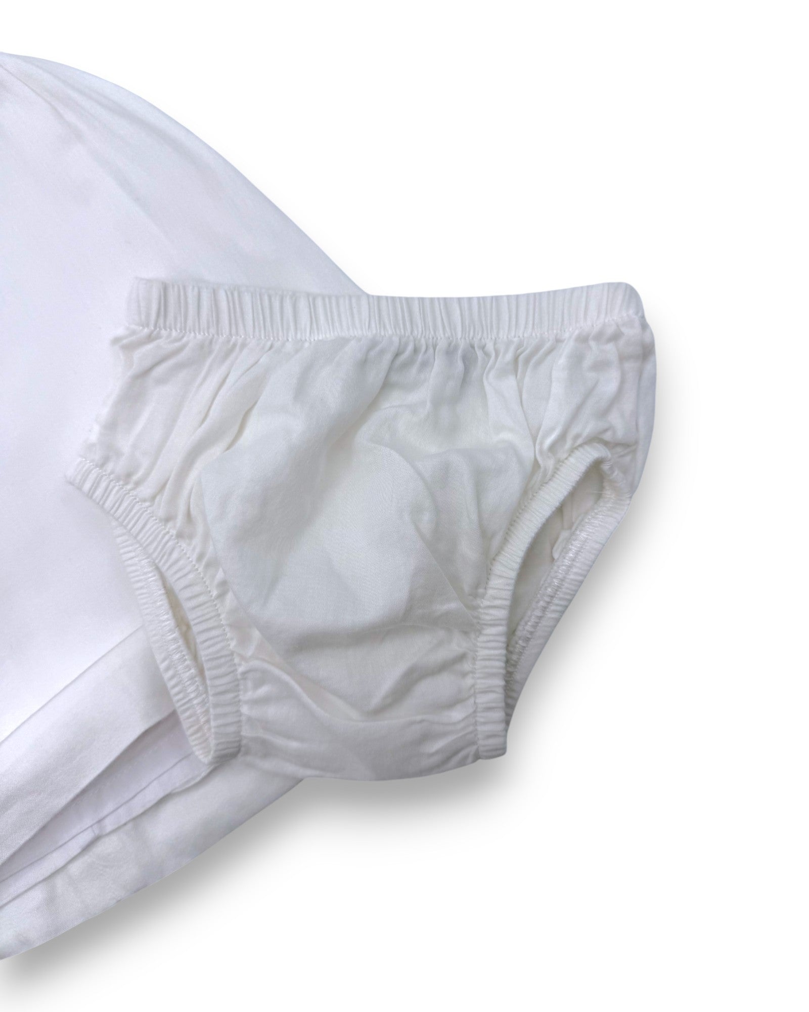 Conjunto Vestido e Tapa Fraldas Branco 6 Meses