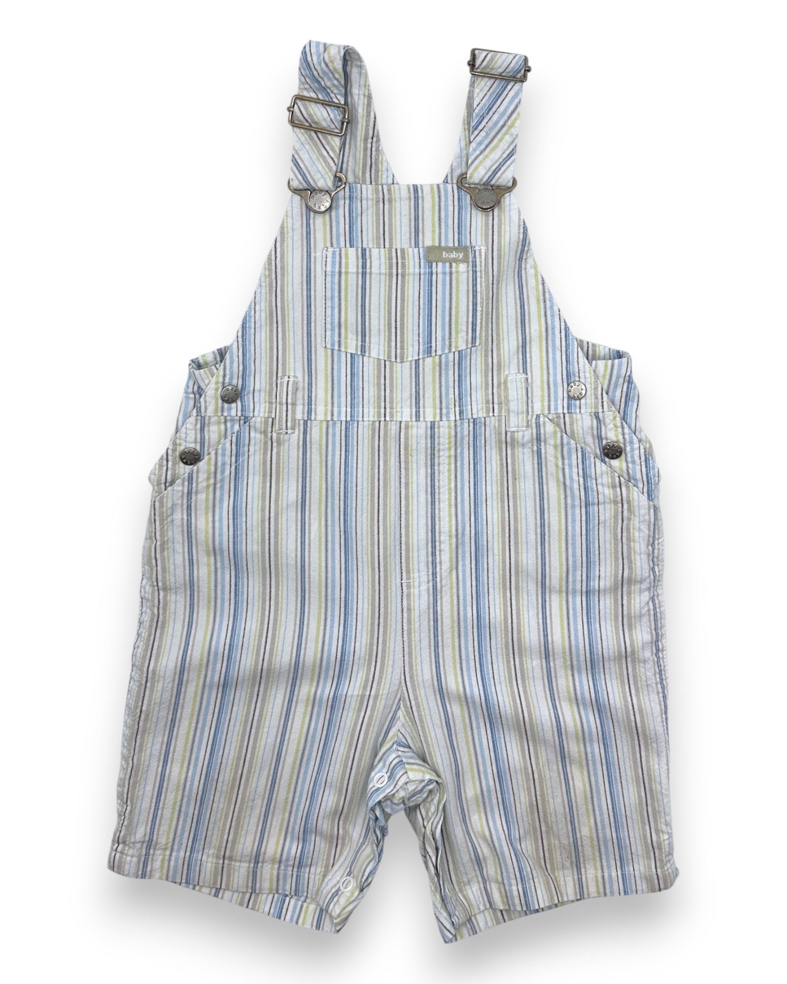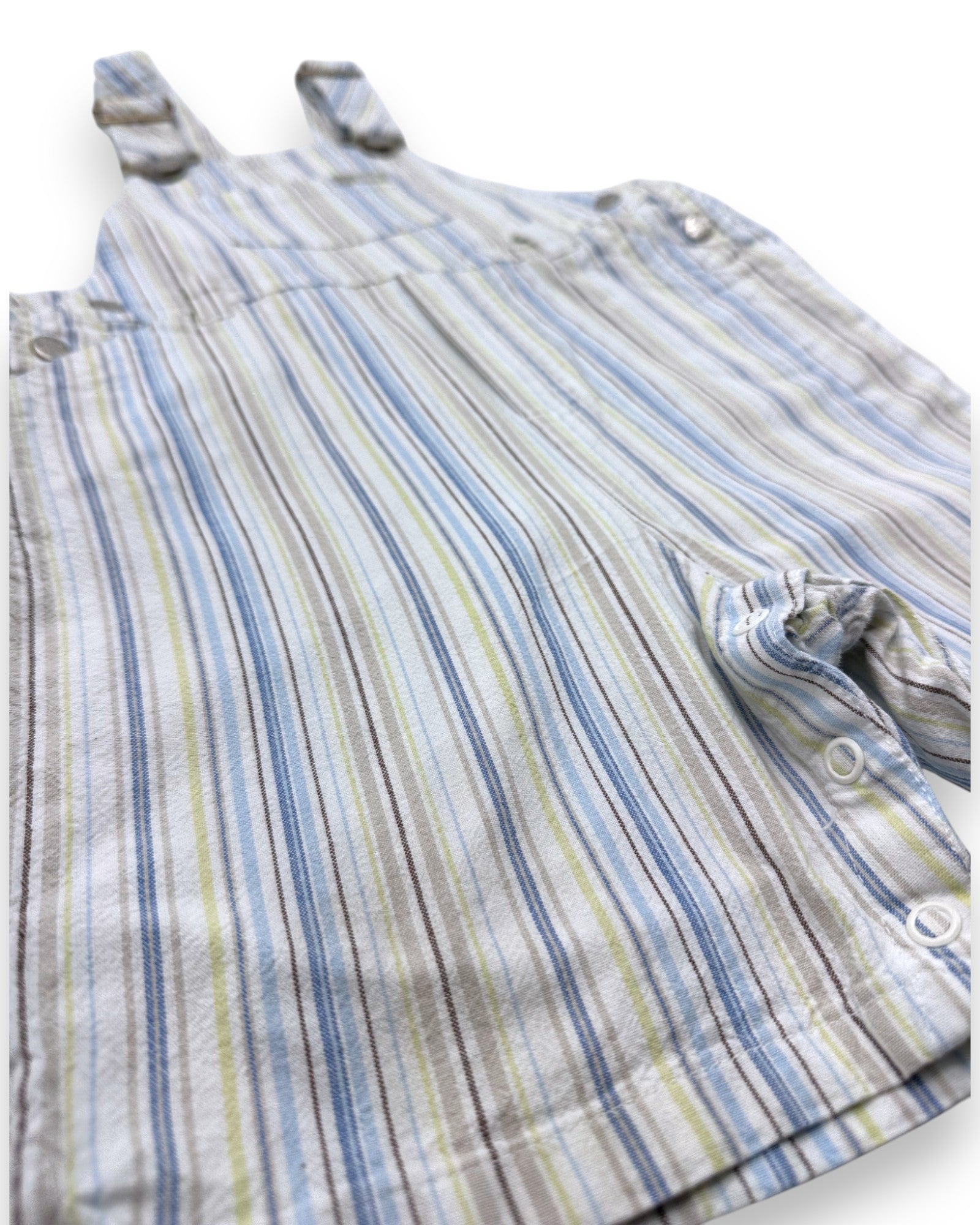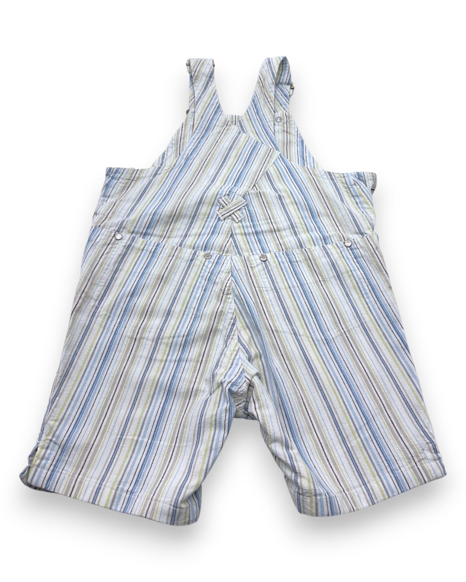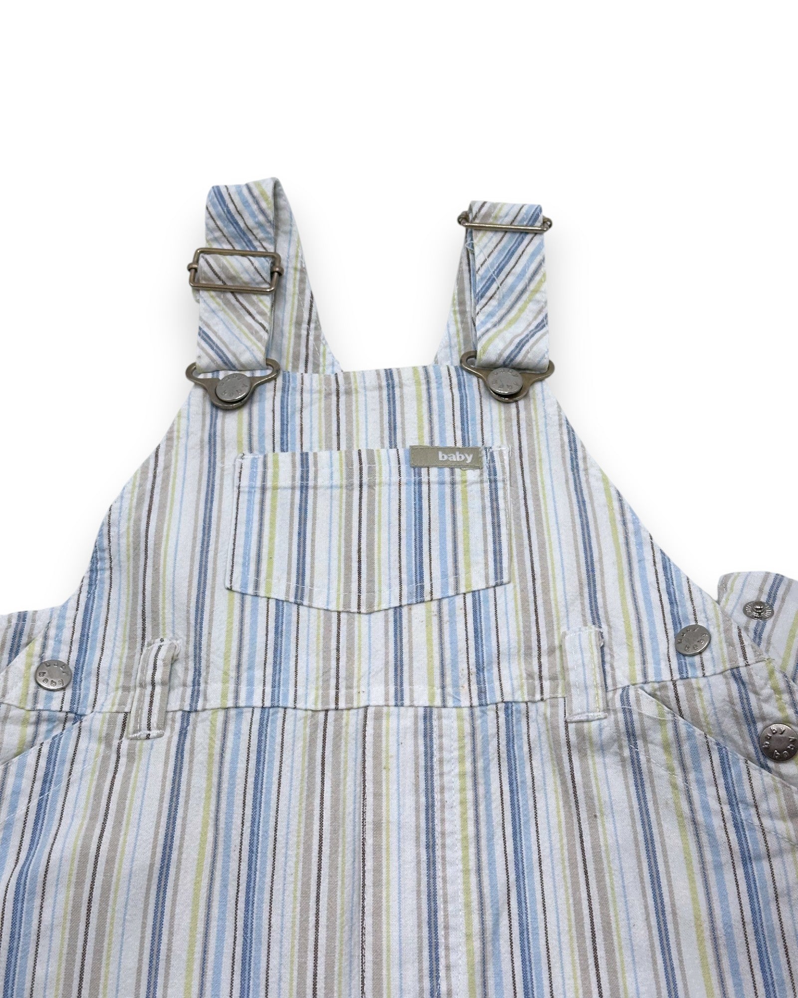 Jardineiras às riscas com abertura entre pernas e alças ajustáveis, da H&M.
