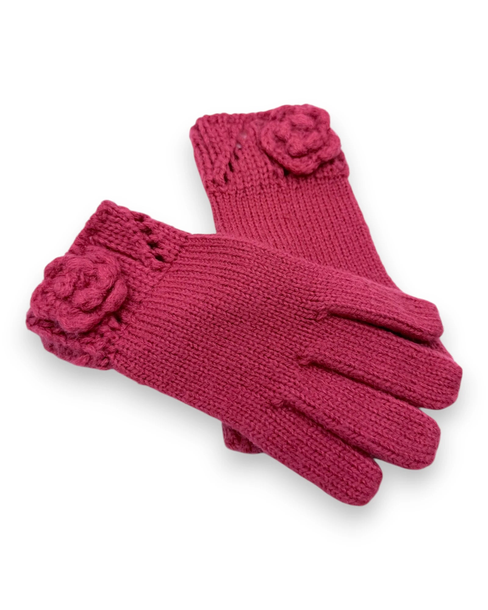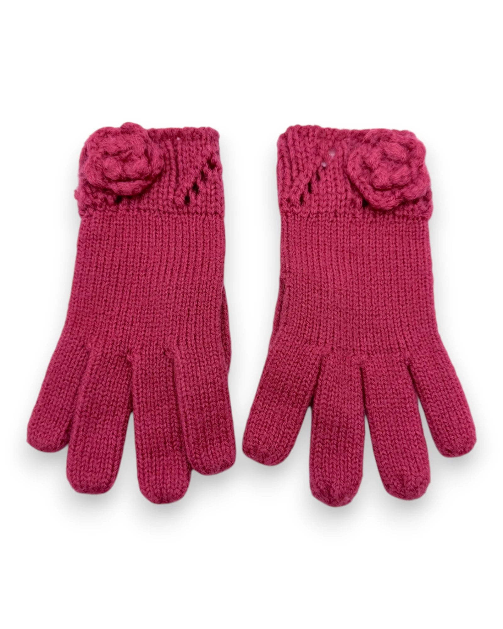 Luvas de malha rosa com flor em pormenor, da Sfera.