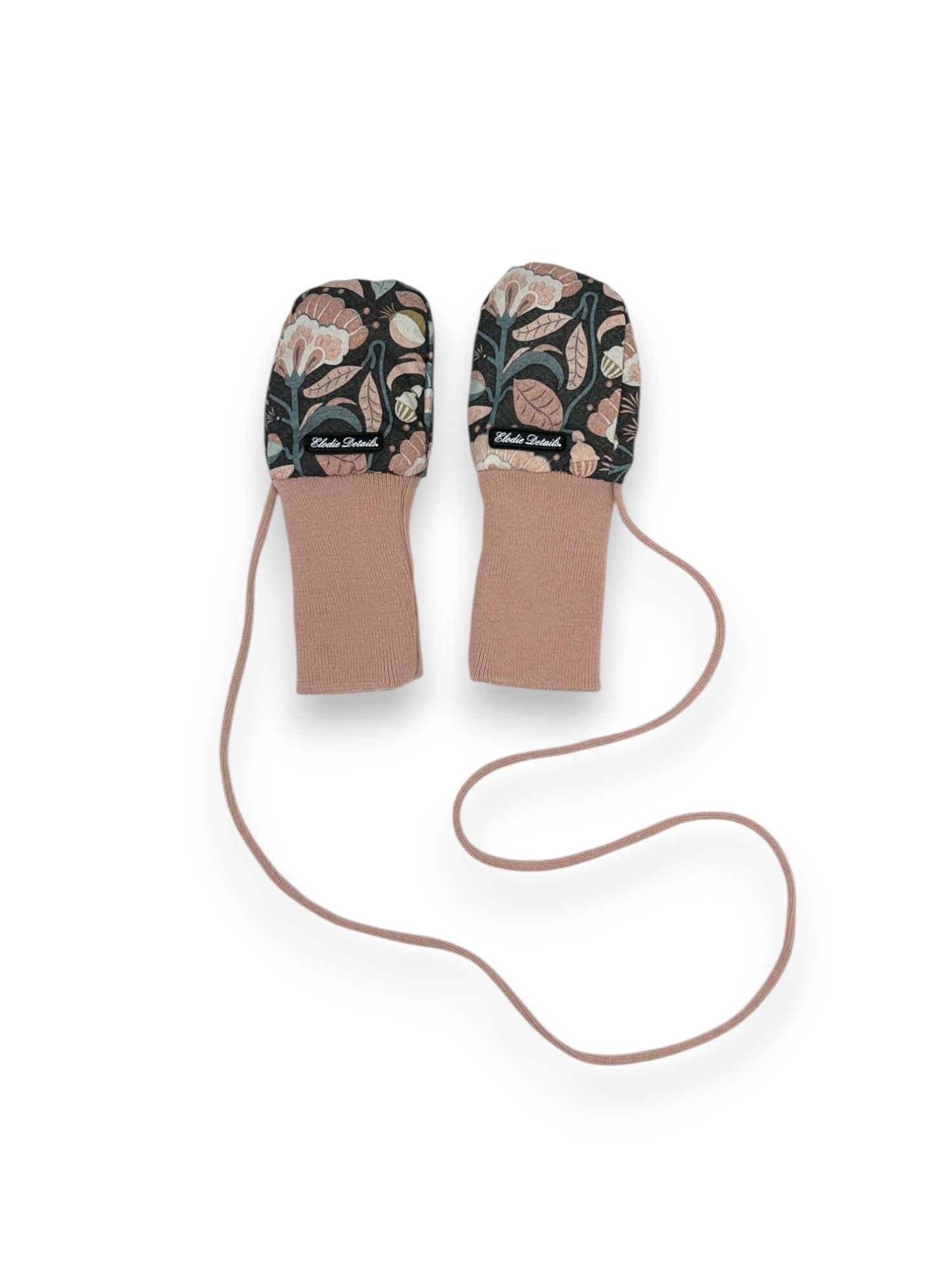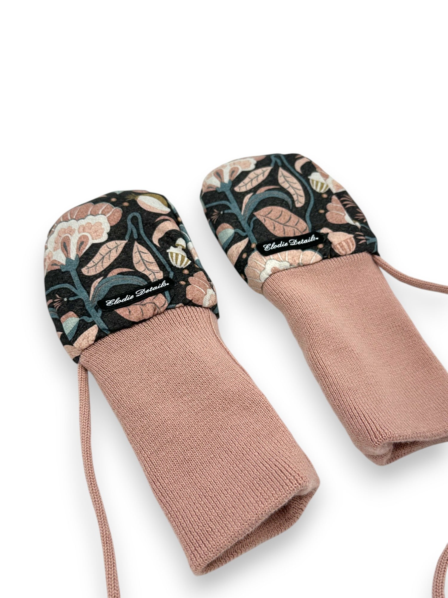Luvas cor de rosa com padrão floral, da marca Elodie.