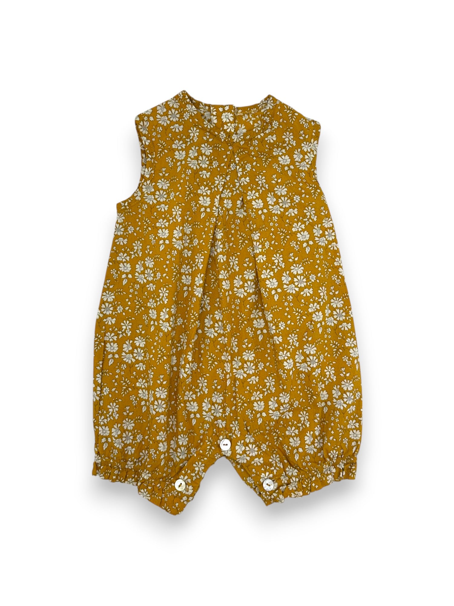 Macacão de algodão fino da Huttelihut. Abertura nas costas e entre pernas com botões.