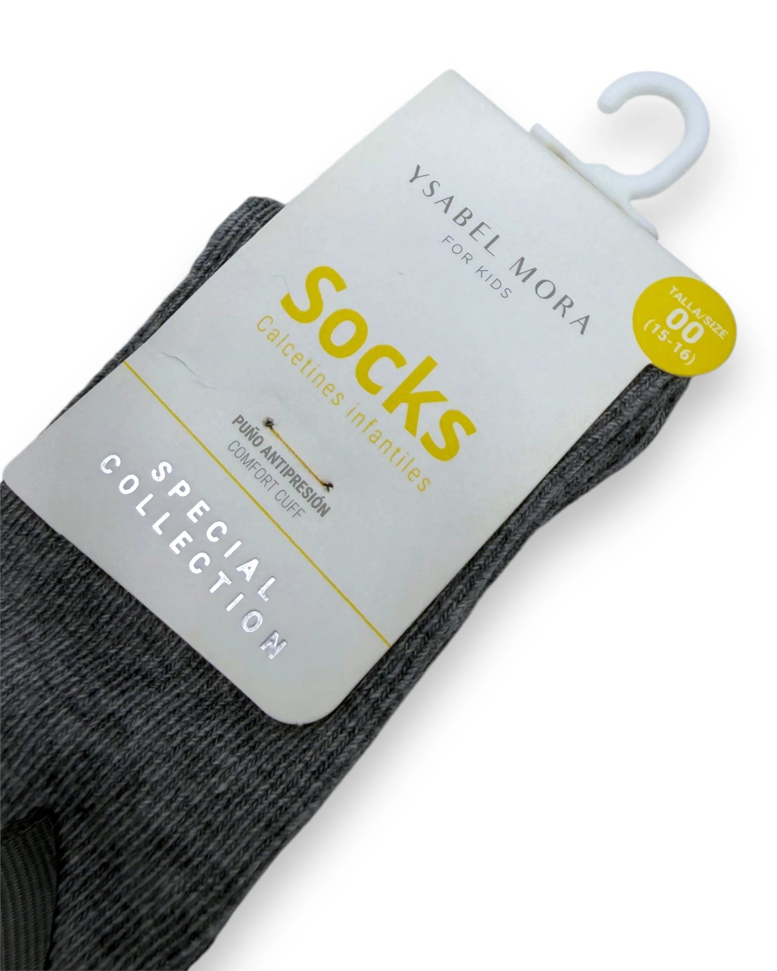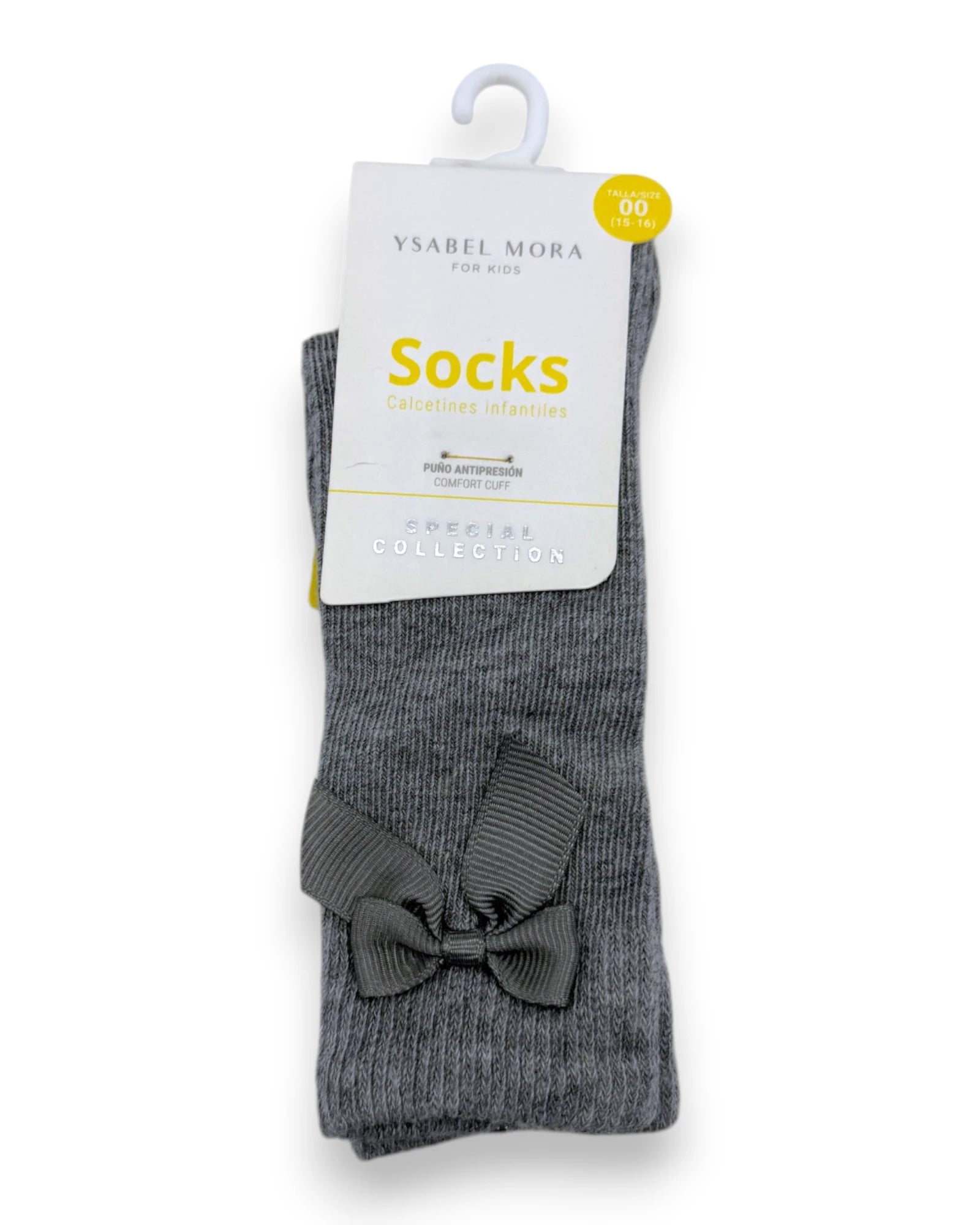 Meias cinzentas com laço, da marca Ysabel Mora, para recém nascido.