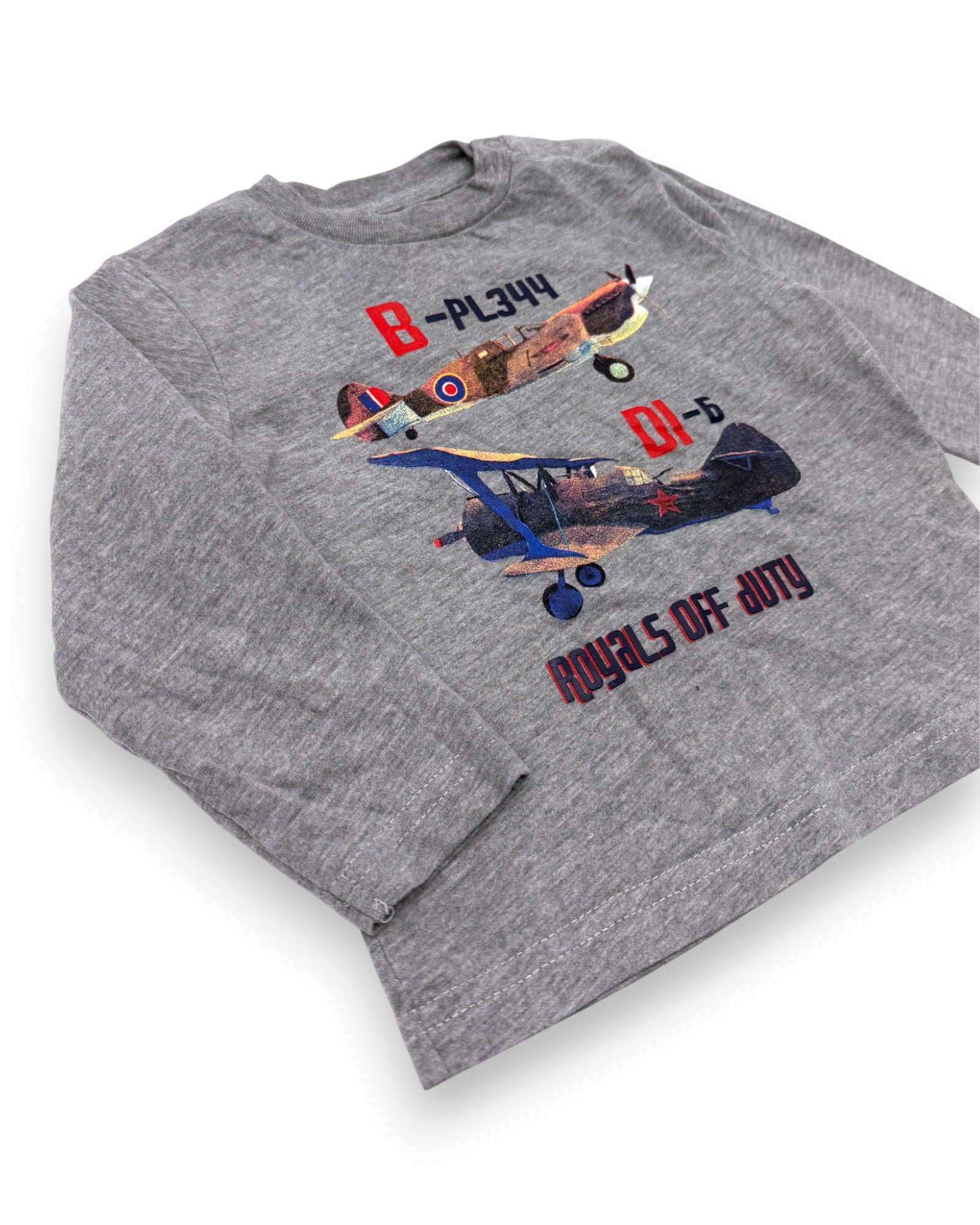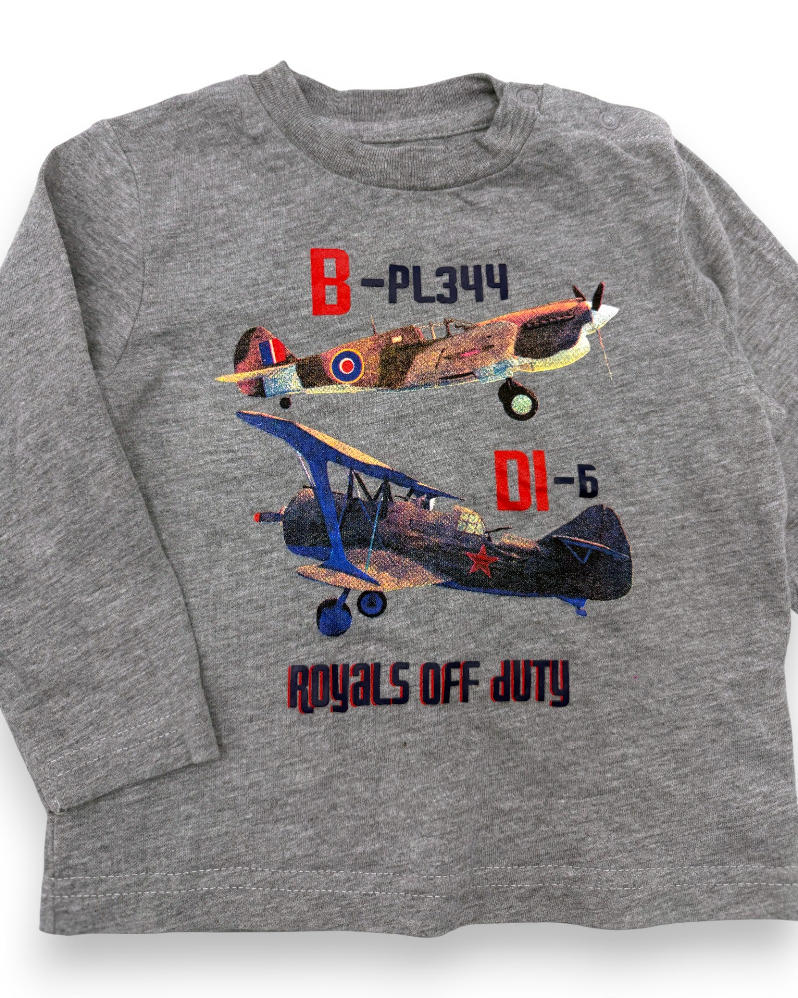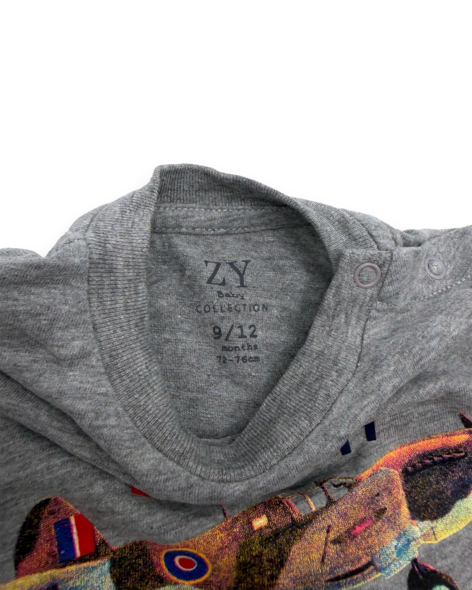 T-shirt de mangas compridas cinzenta, com ilustração de aviões, da Zippy.