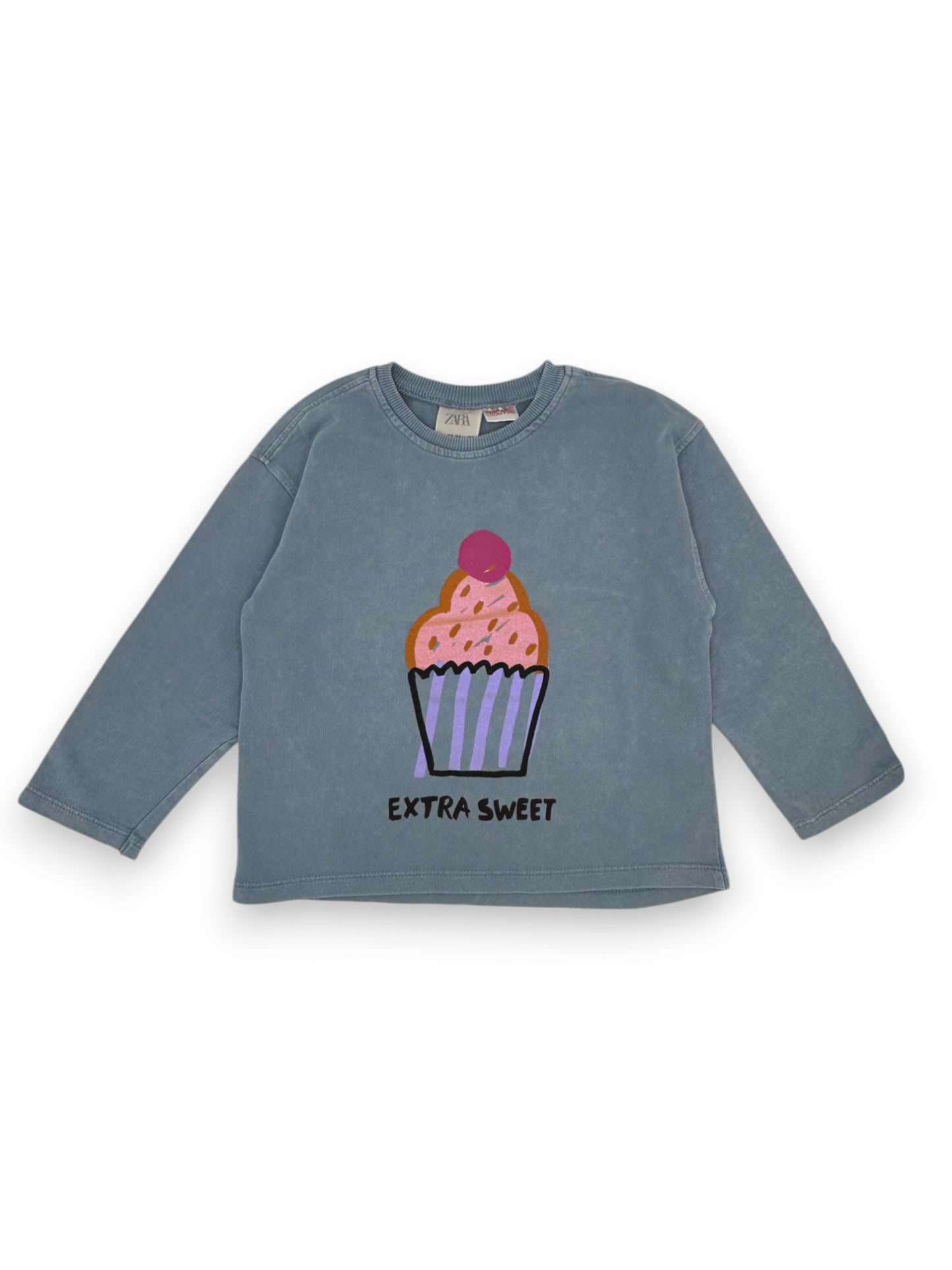 T-Shirt azul de mangas compridas com ilustração de cupcake, da Zara.