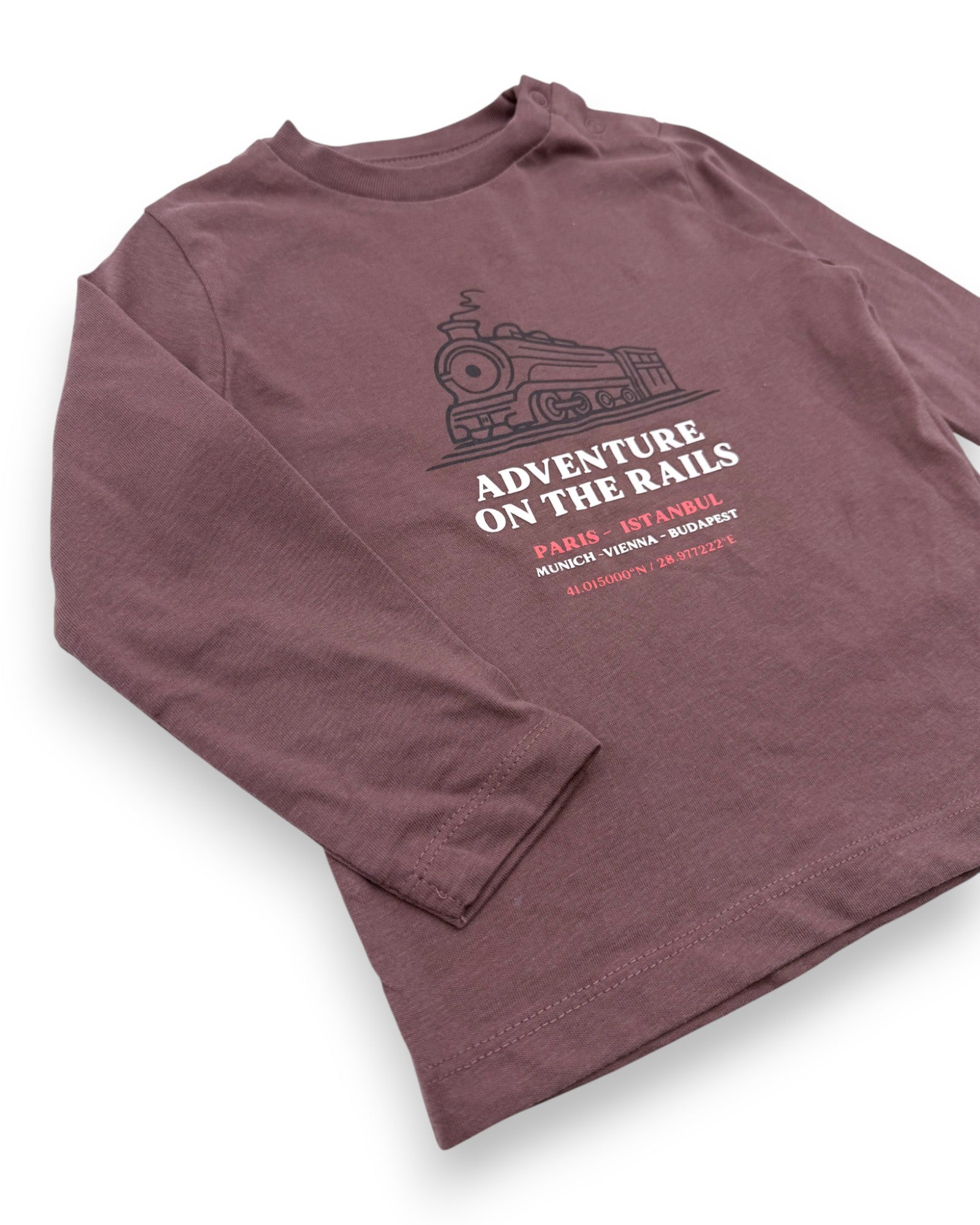 T-shirt roxa de mangas compridas, com ilustração de comboio, da Zippy.