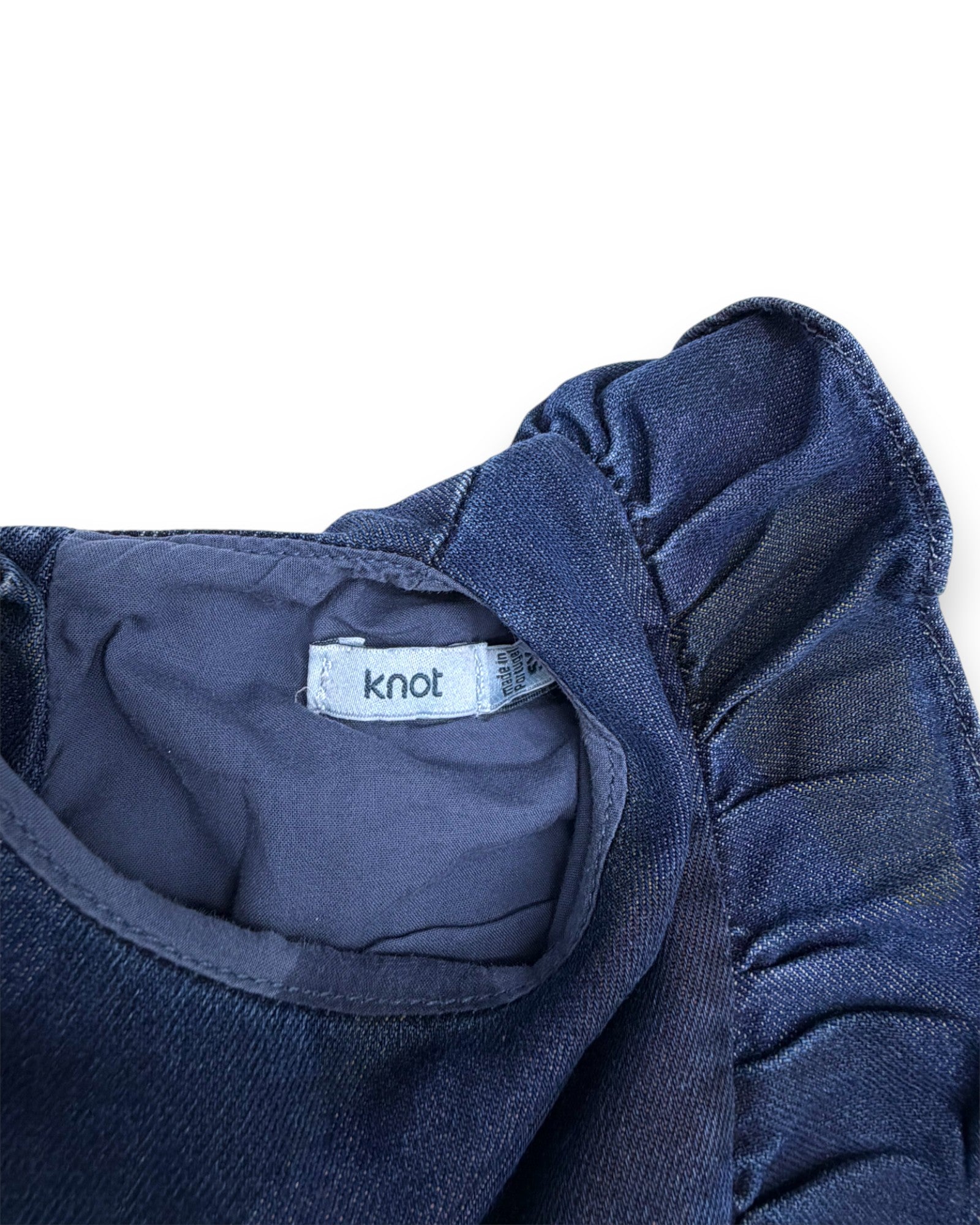 Vestido em ganga azul, de mangas compridas, da Knot.