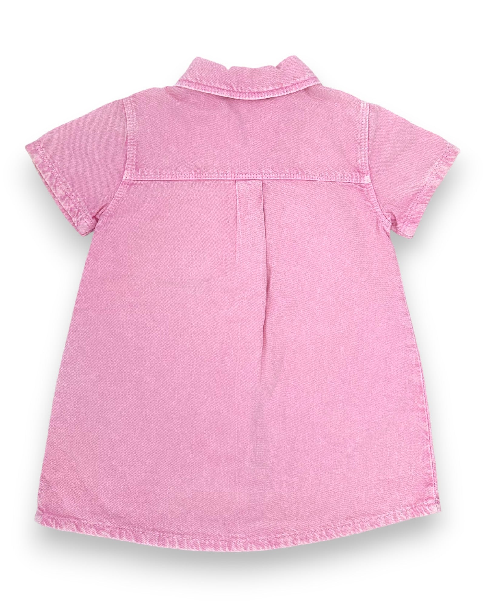 Vestido de ganga rosa, de mangas curtas, da Zara.