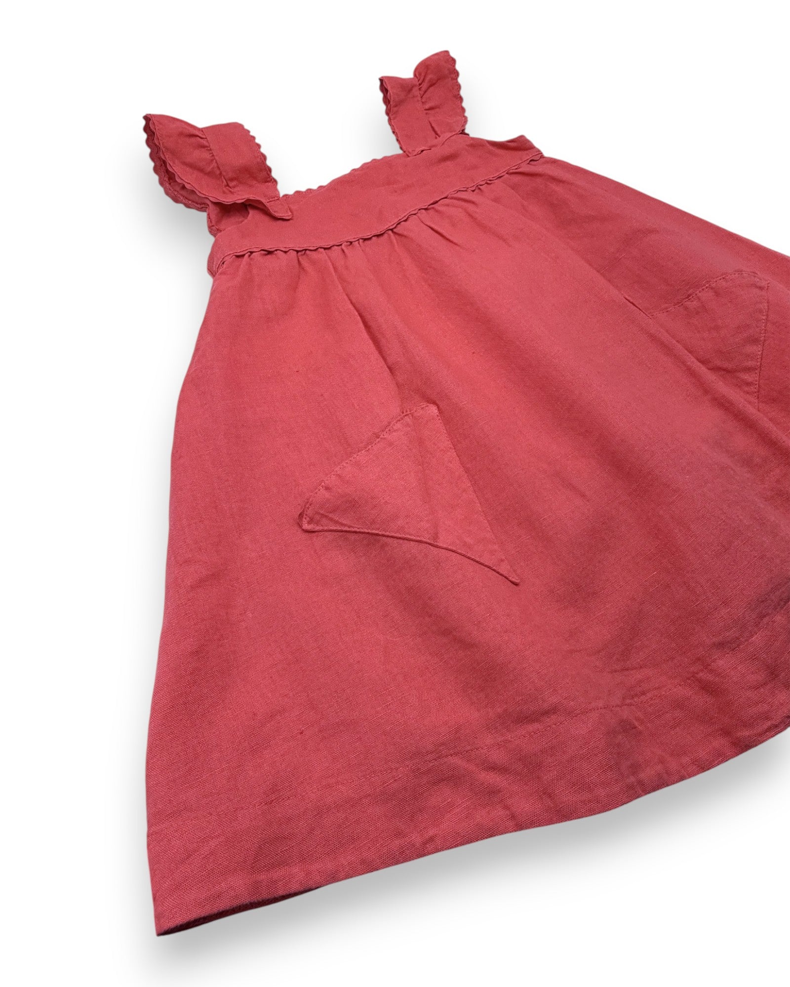 Vestido de alças rosa velho, em linho com forro em algodão, da marca Pecegueiro & Filhos.