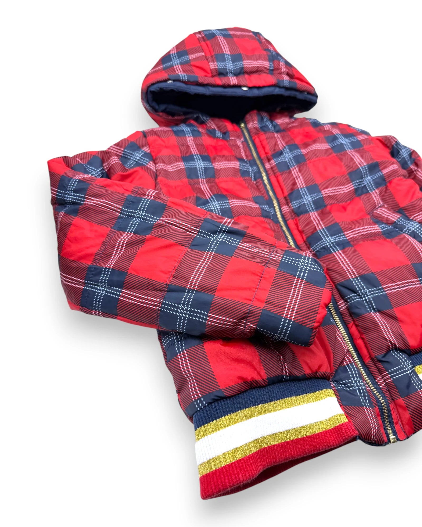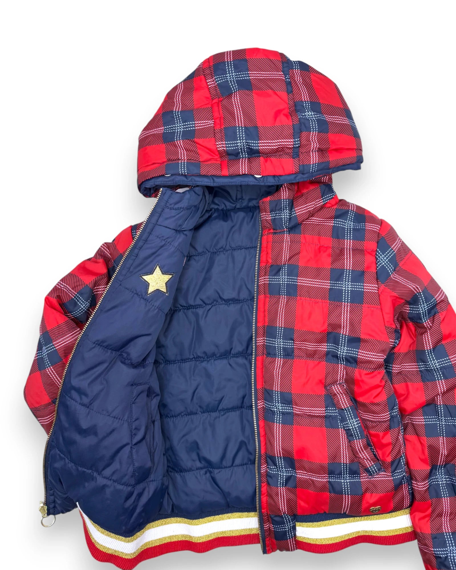 Altura: 116 cm. Blusão reversível impermeável, com capuz, da Tuc Tuc.